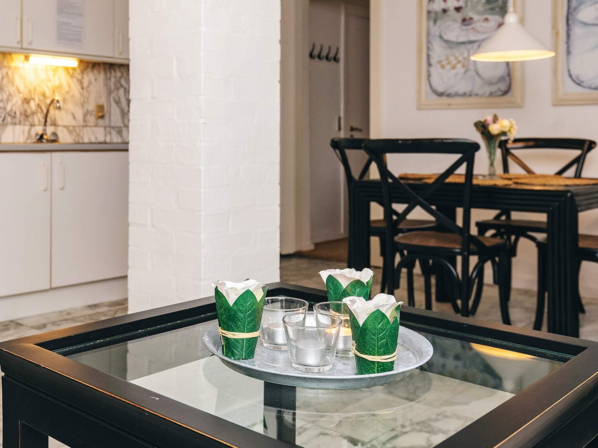 Lejligheden har egen terrasse, hvor du kan nyde morgensolen, slappe af med en god bog eller blot lade blikket glide ud over det grønne område. Atmosfæren er afslappet, stilfuld og ideel til både par, små familier og solo-rejsende, der ønsker at komme helt ned i gear.