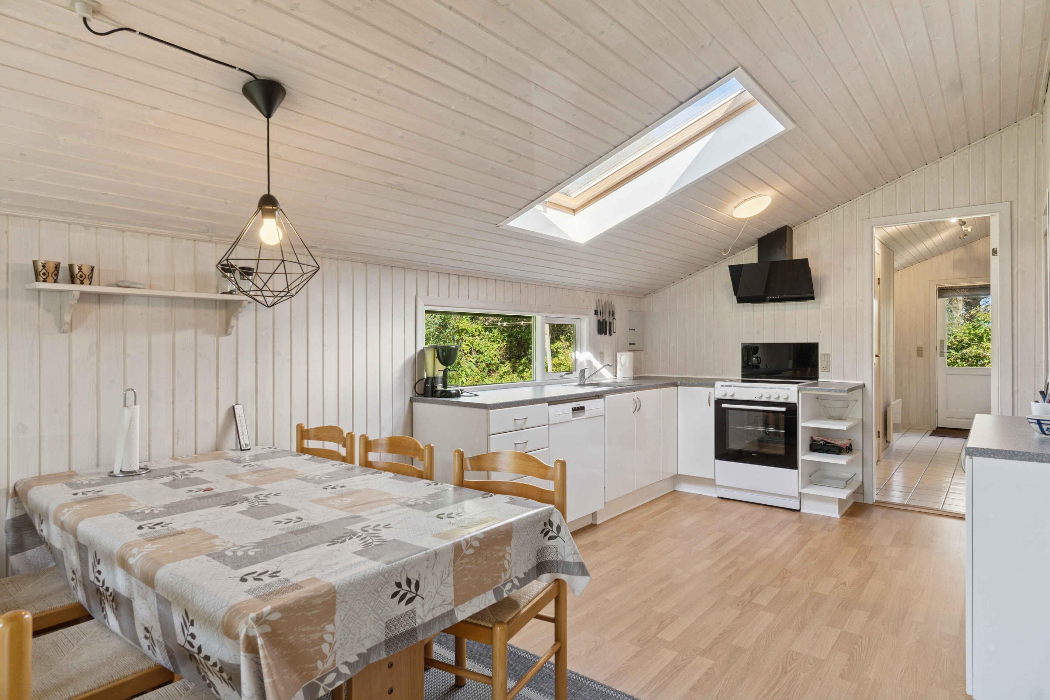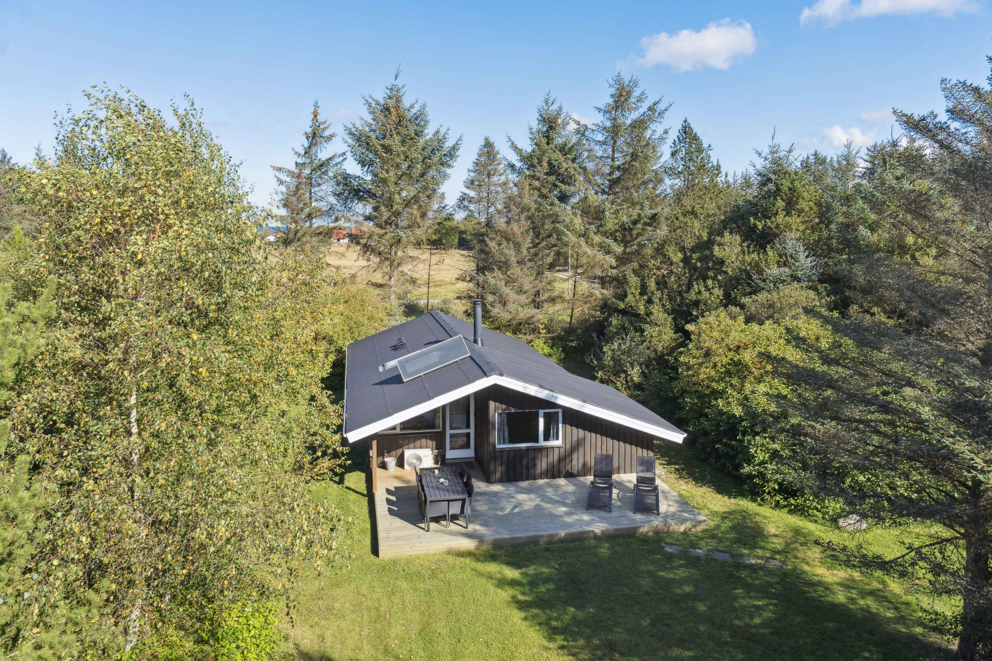 Dette klassiske træsommerhus på 70 m² ligger på en privat naturgrund. Huset har seks soveværelser med tre sovepladser i alt, og er derfor velegnet til et par eller en lille familie, som ønsker rolige rammer tæt på havet. Indenfor er stemningen hyggelig og uformel. Køkken og opholdsrum giver plads til fælles madlavning og samvær, mens soveværelserne skaber gode rammer for hvile. Udenfor finder I en dejlig sydvendt træterrasse. Her kan I nyde solen, spise måltider i det fri eller bare slappe af med en bog. Haven giver mulighed for små spil og lege, og der er plads til at være uforstyrret. Området byder på mange attraktive feriemuligheder. Der er blot 800 meter til stranden, hvor I kan bade, bygge sandslotte eller gå lange ture langs vandet. Vesterhavet er kendt for sin særlige stemning med friske bølger og brede strande, som indbyder til både aktivitet og afslapning. I nærområdet findes gode muligheder for vandre- og cykelture gennem skove og kystnære landskaber. De afmærkede stier gør det nemt at udforske naturen i eget tempo. Her kan I også prøve fiskeri, måske sammen med børnene, og tilberede friskfanget fisk på terrassen. De små byer i området har butikker, caféer og lokale oplevelser, hvor I kan få indblik i egnens liv og kultur. Kombinationen af nærhed til strand, natur og lokale aktiviteter gør dette sted oplagt til en ferie, hvor I både kan slappe af og være aktive. Slut dagen med at se solen gå ned over havet og vend hjem med ny energi efter en ferie, der kombinerer natur, ro og oplevelser.