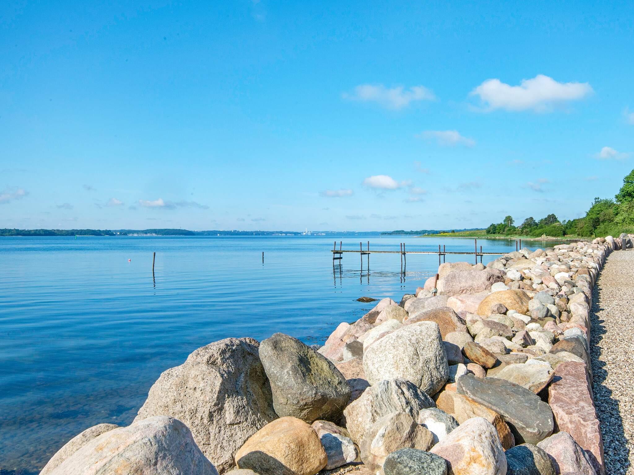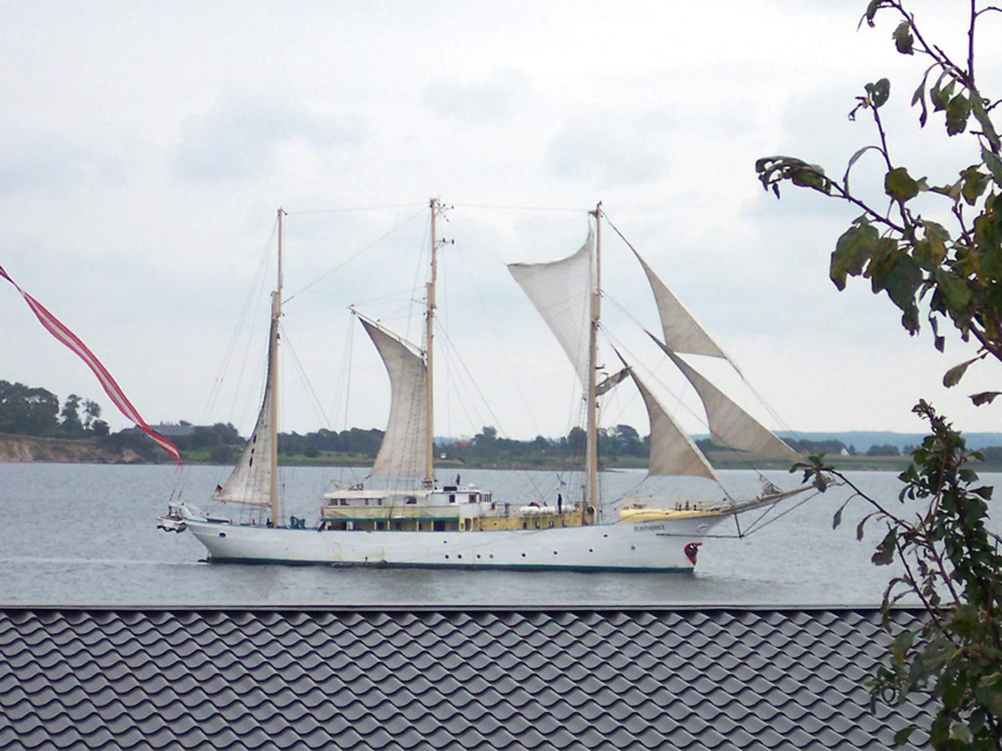 Charmerende terrasselejlighed med udsigt over Flensborg Fjord og direkte adgang til strand.