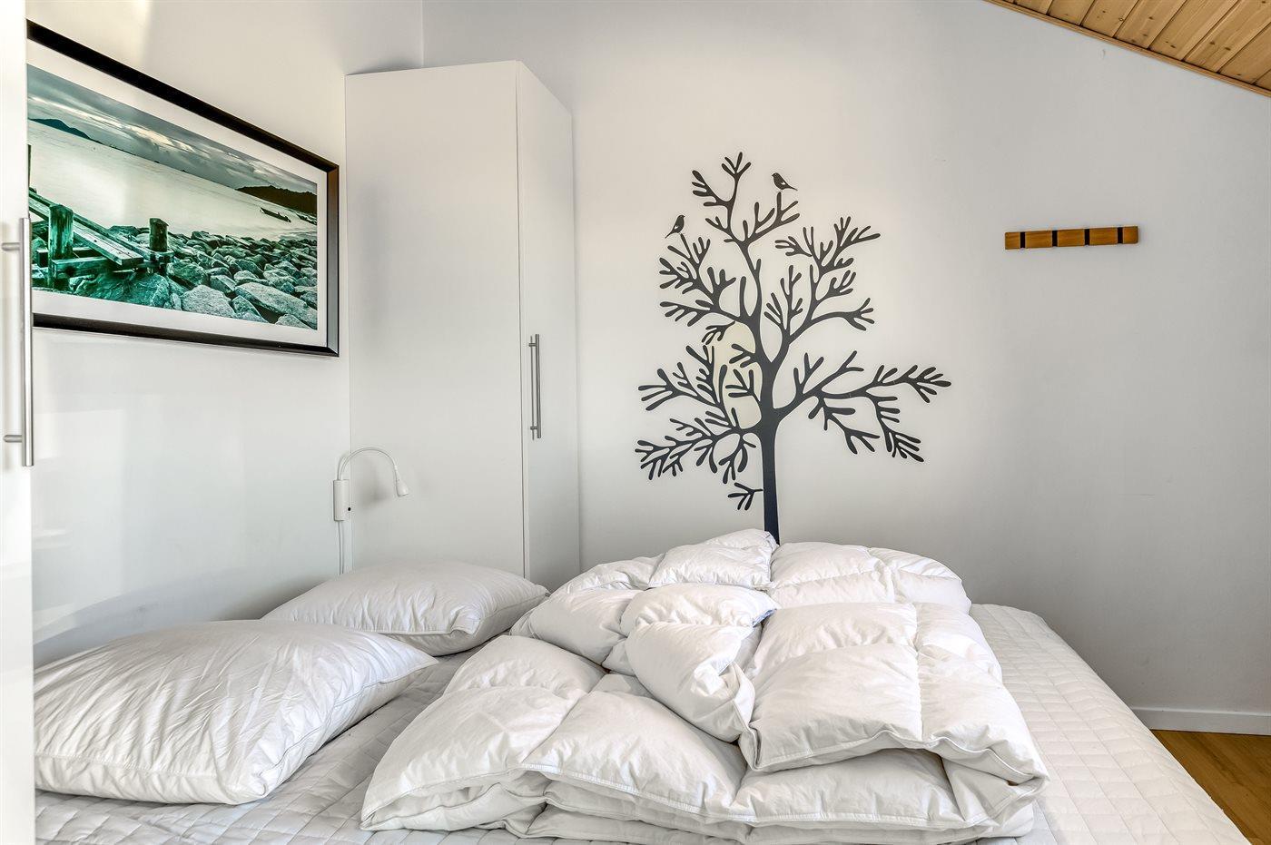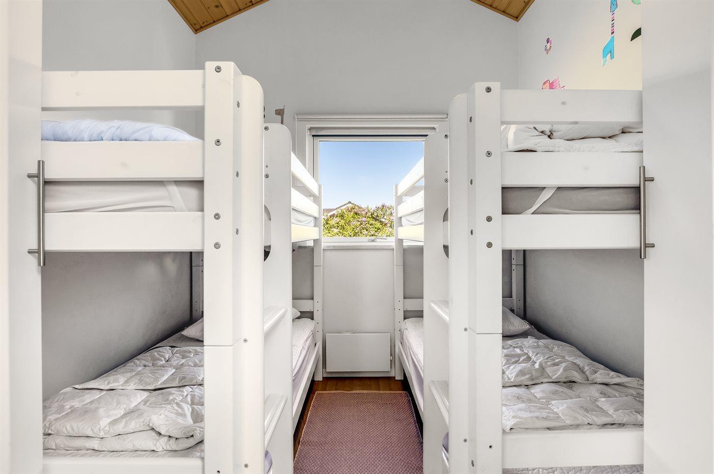 Der er i alt 4 soveværelser. Sovepladserne fordeler sig på: 2 sovepladser i dobbeltseng. 4 sovepladser i enkeltsenge. 4 sovepladser i køjesenge. Derudover er der 1 stk. barneseng.