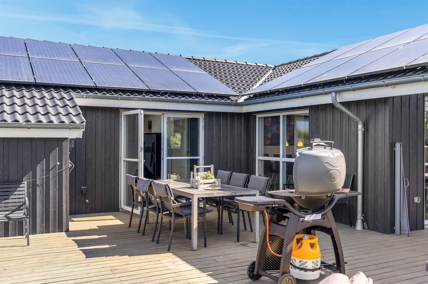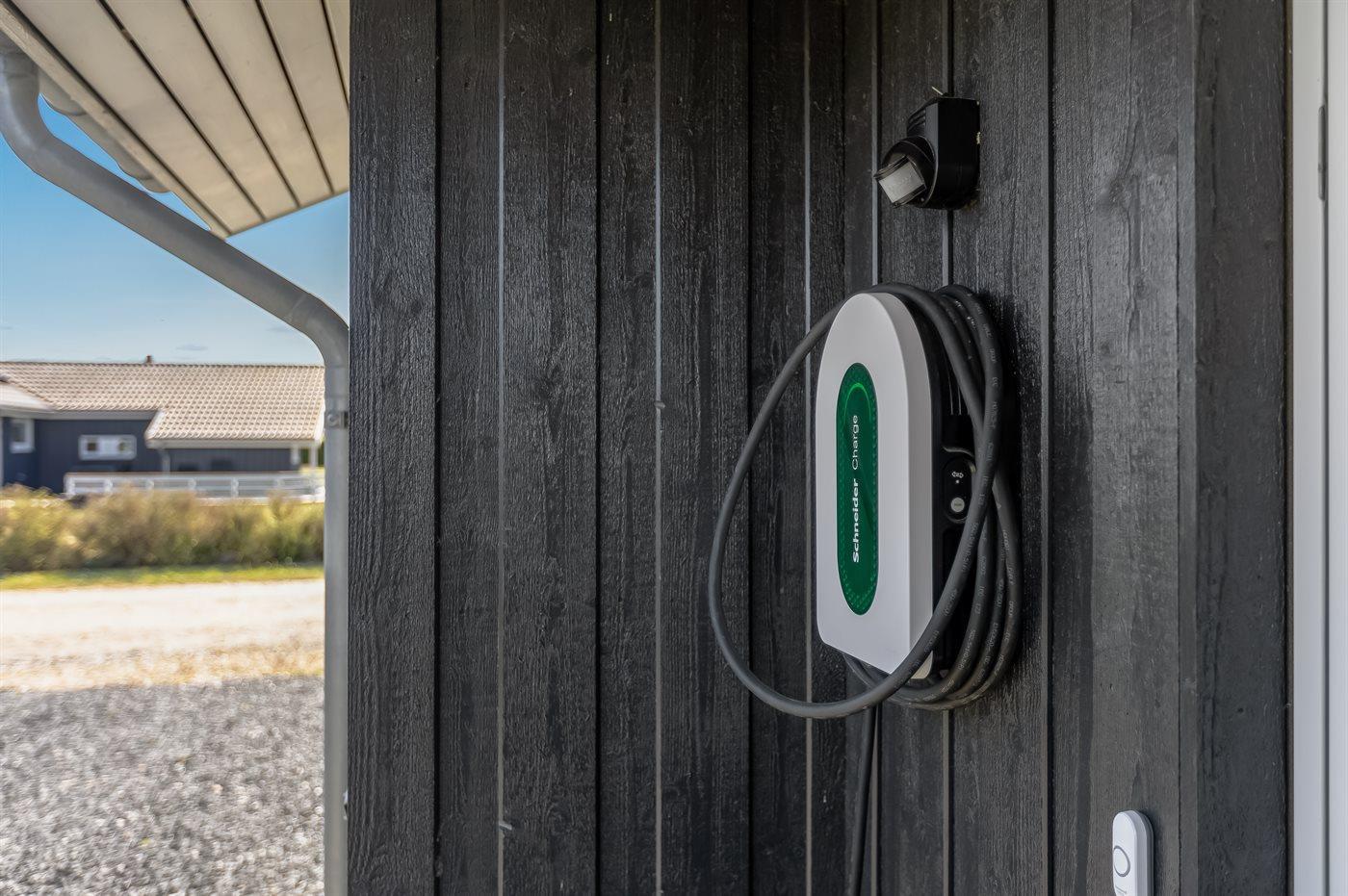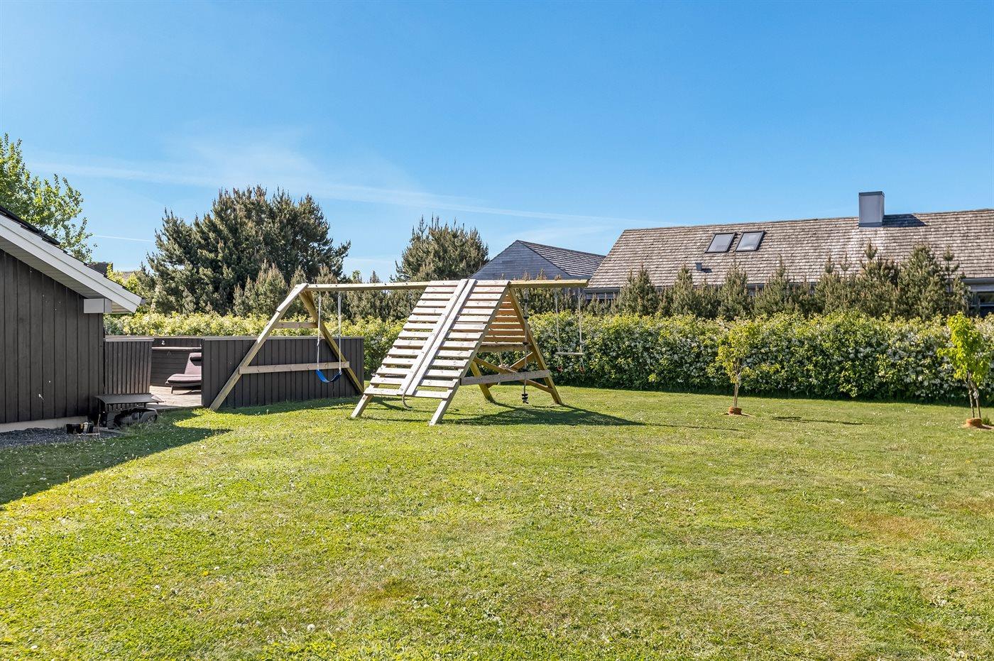 Ferieboligen er beliggende på en 1000 m² stor havegrund. Der er 650 m til havet. Nærmeste forretning er beliggende i en afstand af 4000 m. Der er en golfbane i en afstand af 15000 m. Til ferieboligen hører åbent terrasseareal. Desuden er der overdækket terrasse. Gynge. Legetårn. Der ligger en legeplads i en afstand af 150 m. Grill til rådighed. Der er installeret stik til opladning af elbil. Type 2 stik. Med 11 kW ladeeffekt. Parkering ved ferieboligen.