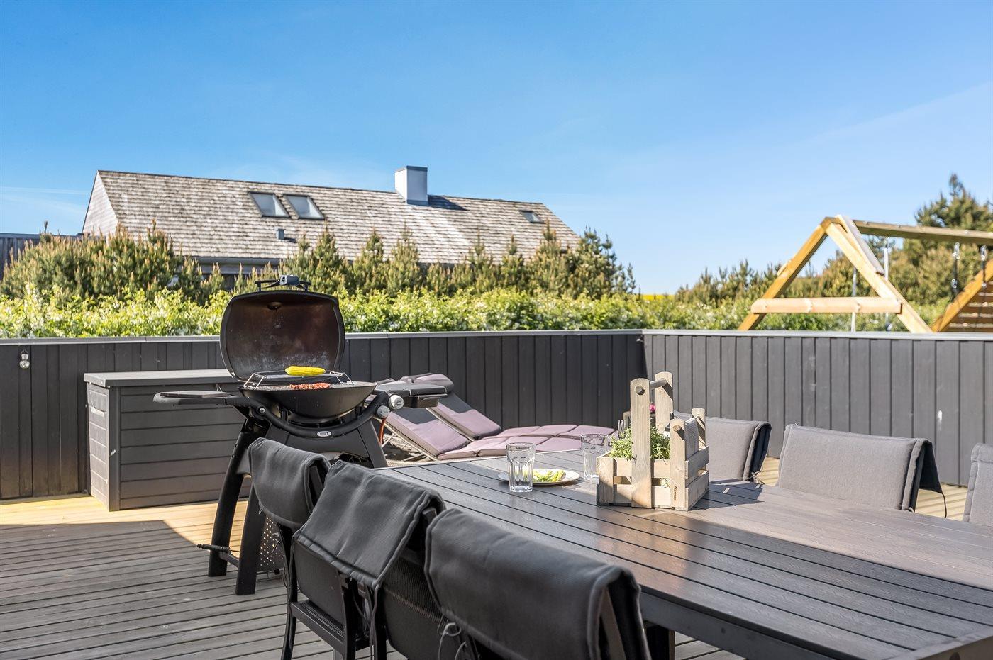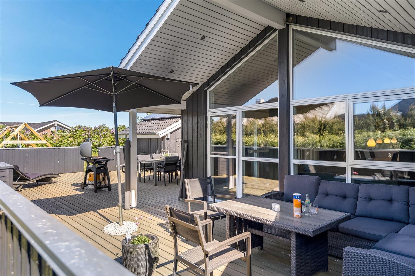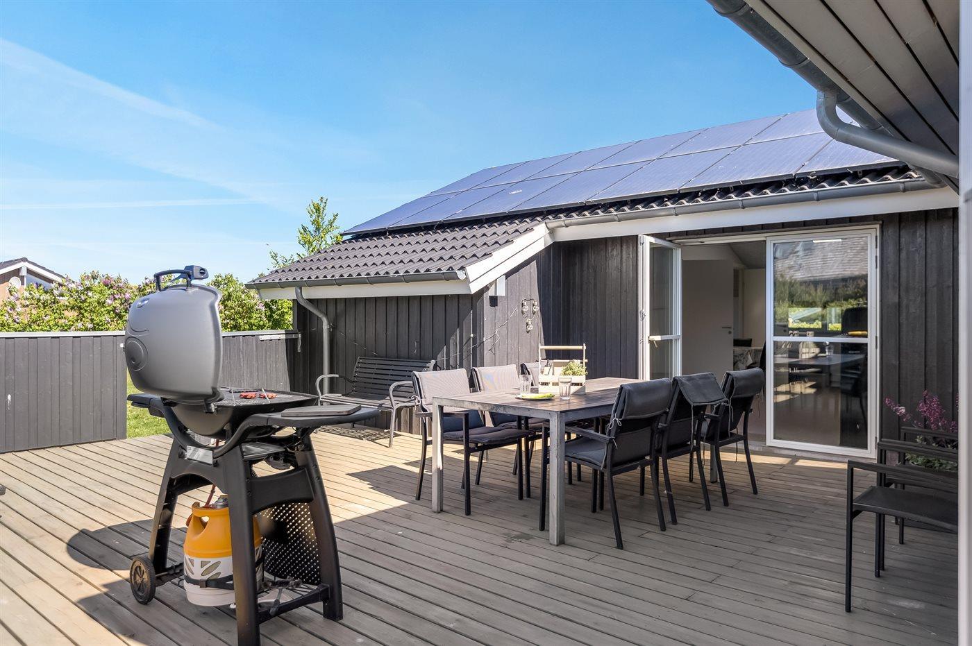 Ferieboligen er beliggende på en 1000 m² stor havegrund. Der er 650 m til havet. Nærmeste forretning er beliggende i en afstand af 4000 m. Der er en golfbane i en afstand af 15000 m. Til ferieboligen hører åbent terrasseareal. Desuden er der overdækket terrasse. Gynge. Legetårn. Der ligger en legeplads i en afstand af 150 m. Grill til rådighed. Der er installeret stik til opladning af elbil. Type 2 stik. Med 11 kW ladeeffekt. Parkering ved ferieboligen.