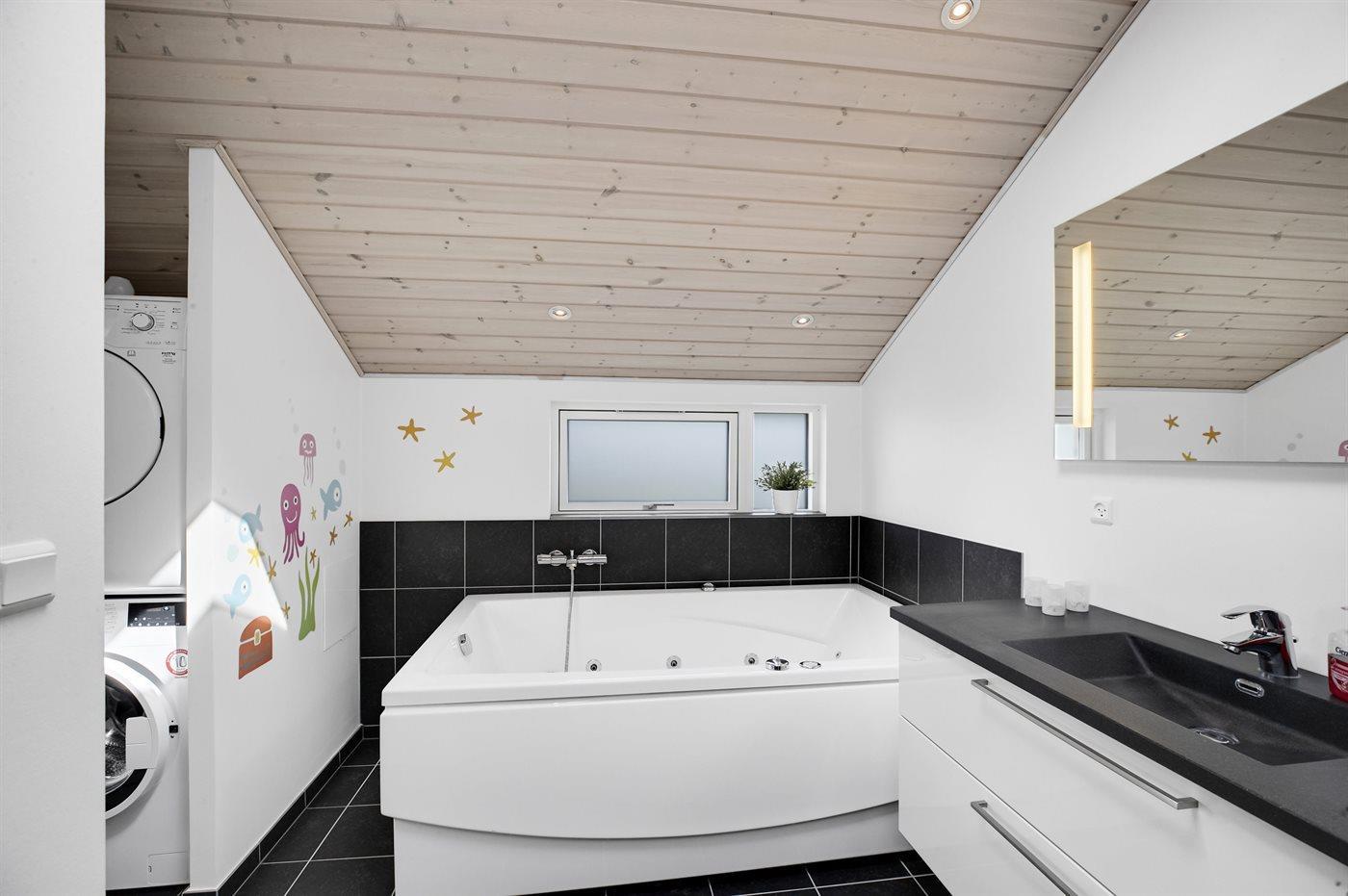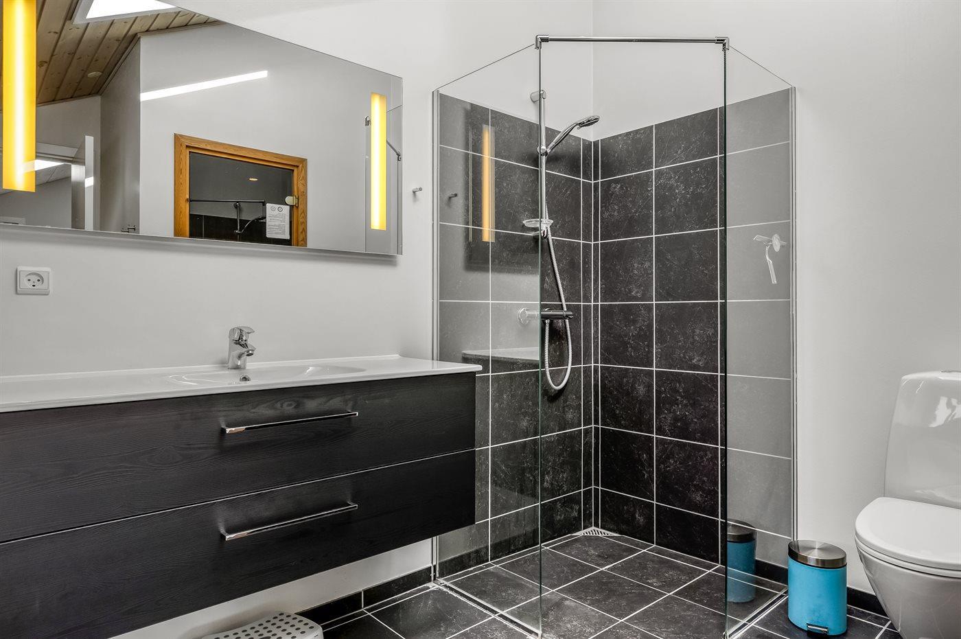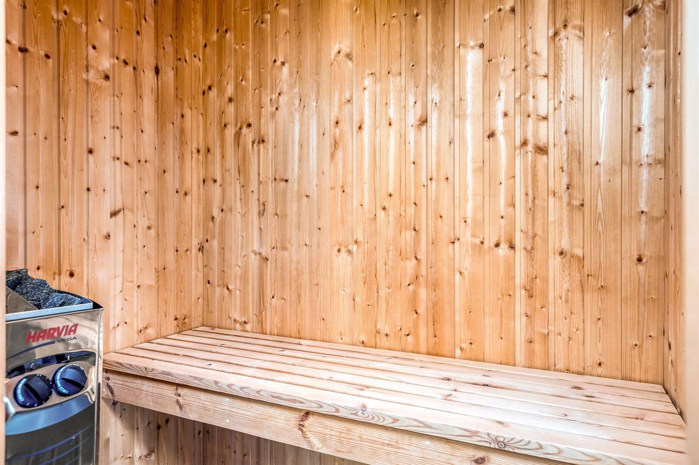 Der er 2 badeværelser med bruseniche og 2 toiletter. Der er gulvvarme på 2 badeværelser. I saunaen er der mulighed for afslapning.
