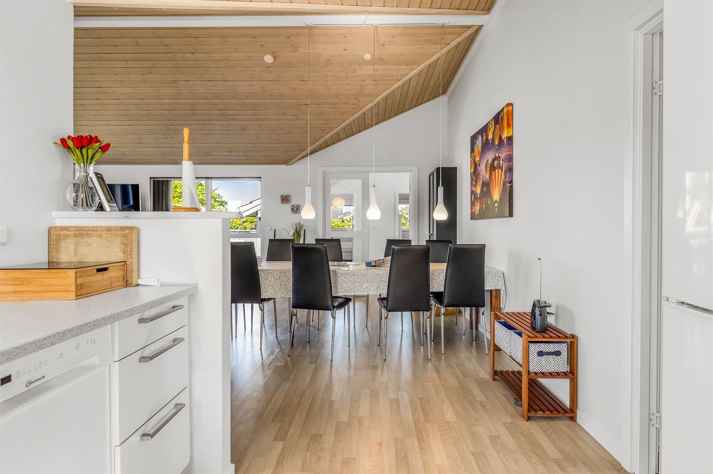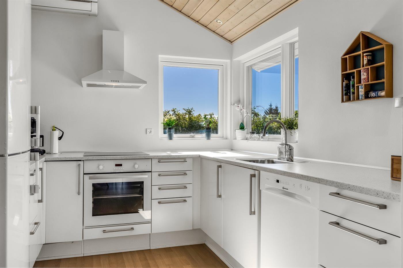 Køkkenet er udstyret med 1 køleskab. Der er 4 keramiske kogeplader, varmluftovn, mikrobølgeovn samt opvaskemaskine.