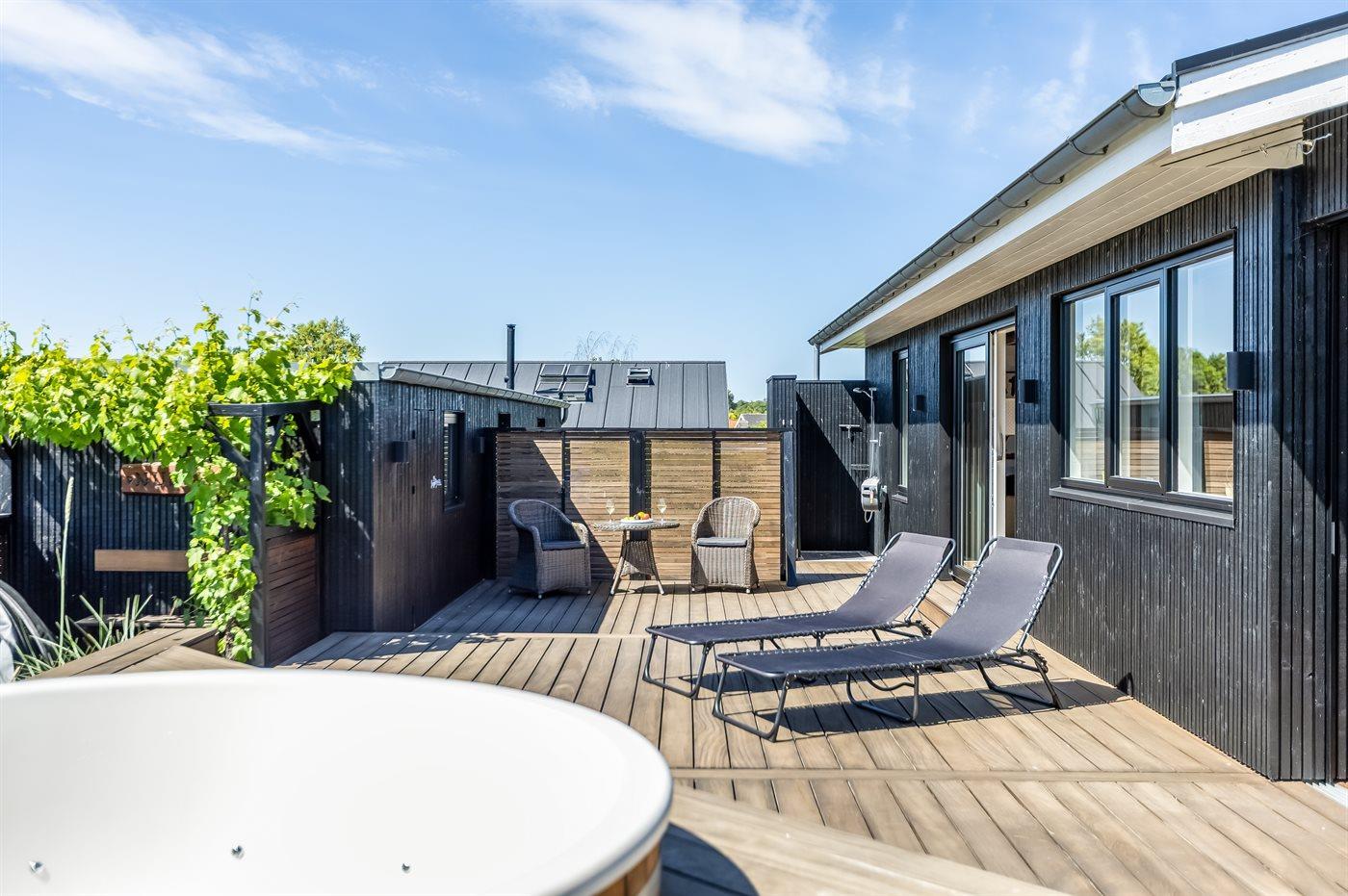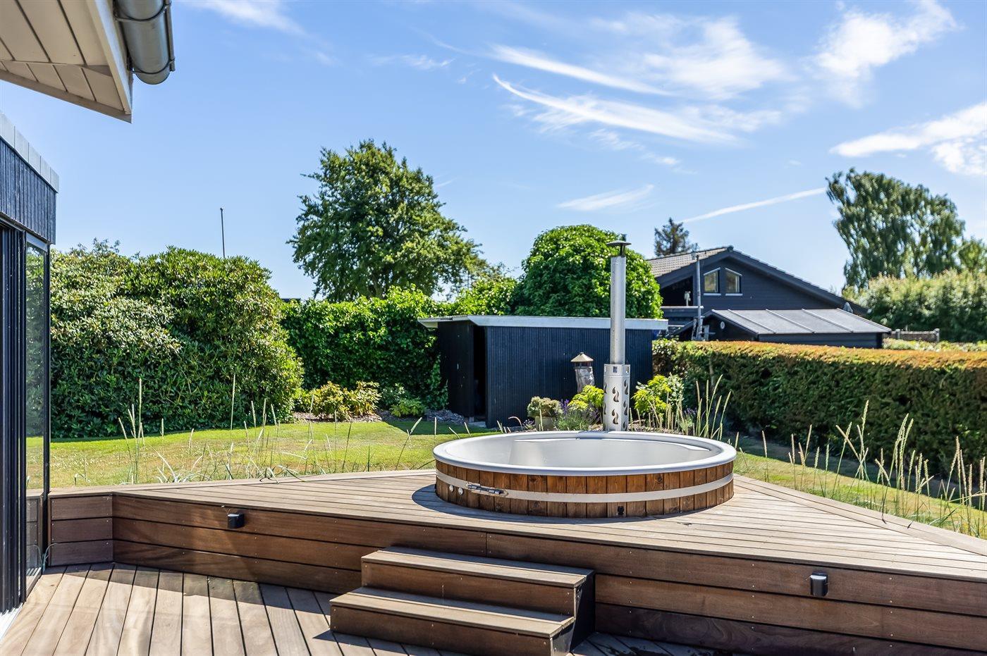 Der er mulighed for afslapning i det udendørs vildmarkskar til 5 personer.