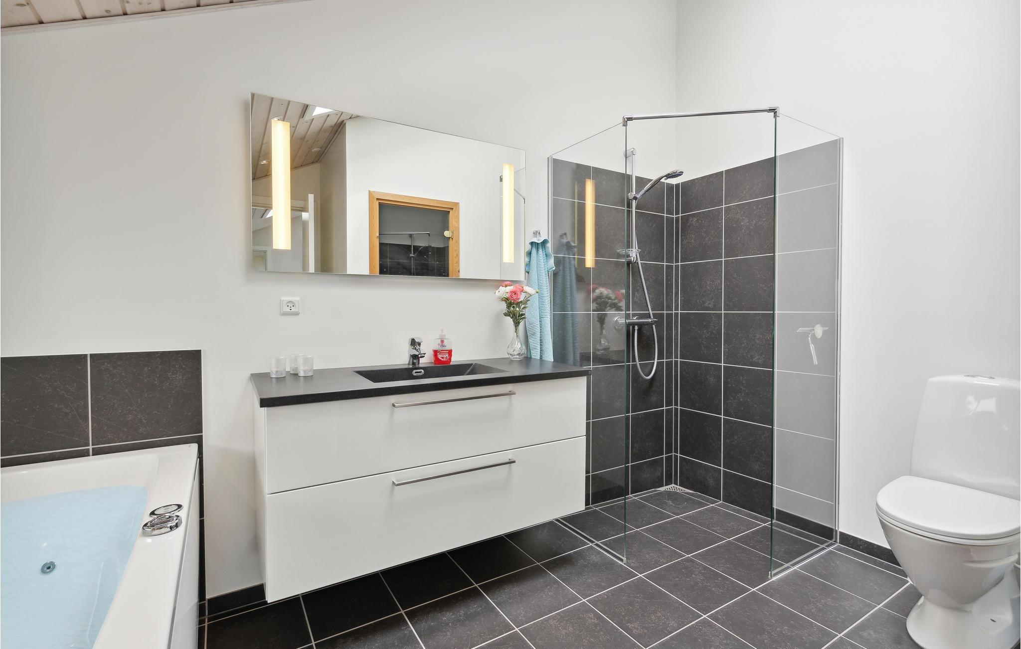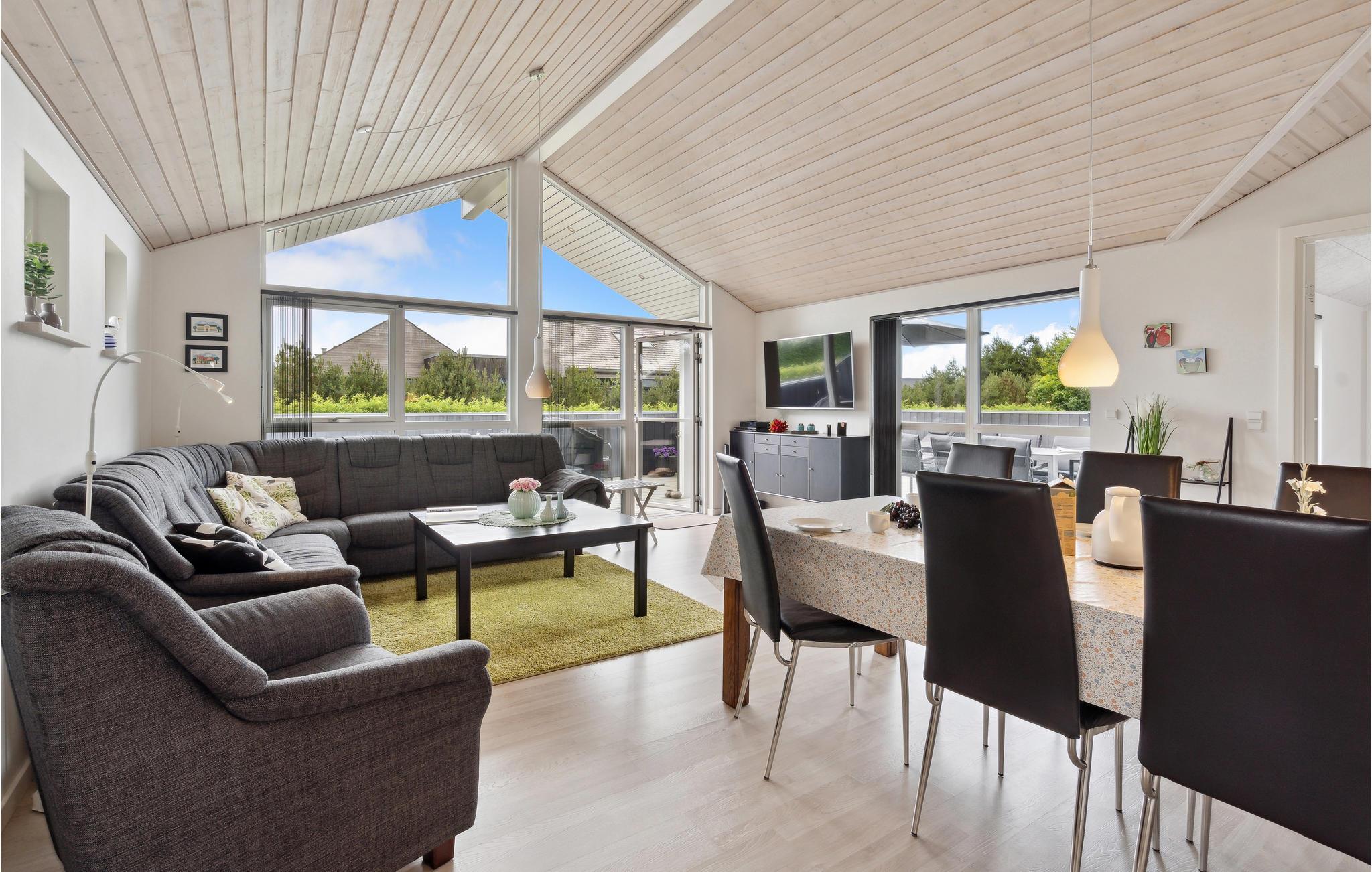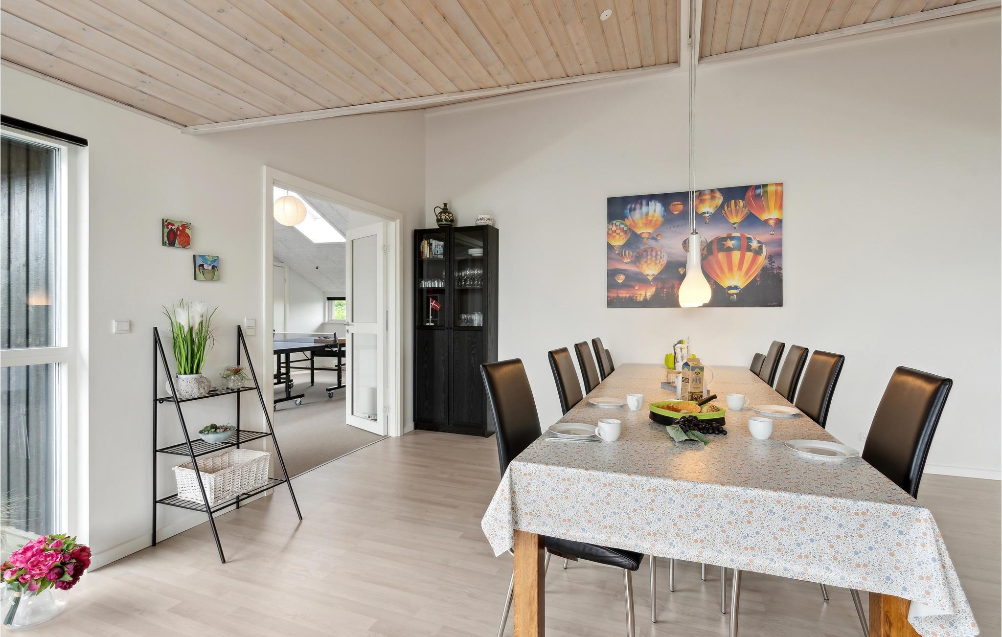 Dette skønne feriehus ligger i et sommerhusområde ved Flovt Strand, som indbyder til en dejlig ferie med sin smukke natur og dejlige sandstrand. Store vinduer oplyser stuen med et naturligt lys og bidrager til en behagelig atmosfære. Hyg jer med fælles madlavning og kæmp imod hinanden i familiens yndlingsbrætspil. Mens de små tegner eller lægger puslespil, kan de større spille bordtennis. Efter en dejlig dag på stranden kan I forkæle jer selv i spabadet eller slappe af i husets sauna. Flyt alle måltiderne udenfor på varme dage. På terrassen kan I tilbringe mange hyggelige timer under åben himmel. Glæd hele familien med bål og snobrød.