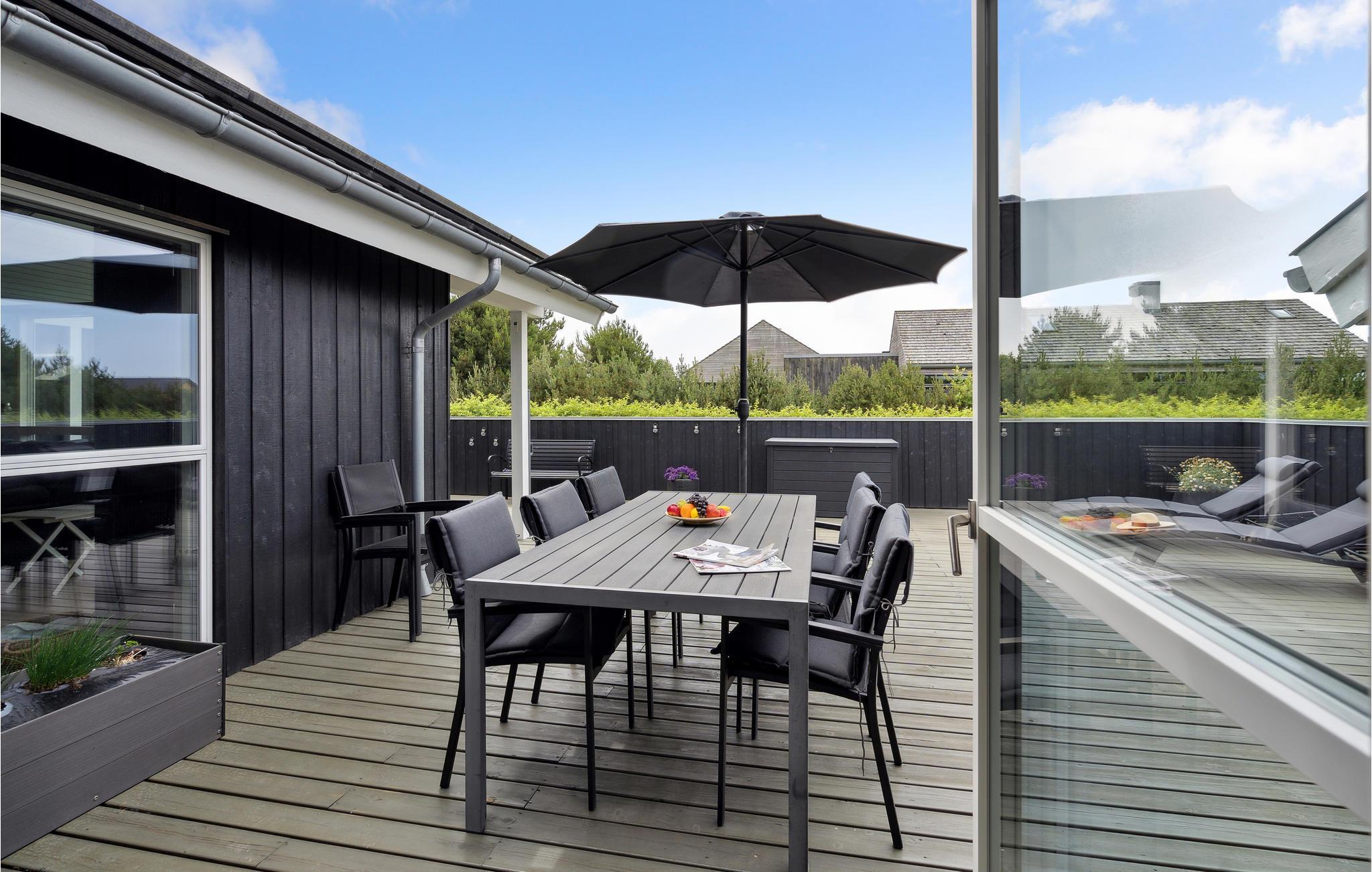 Stranden ligger i gåafstand fra feriehuset. Og kun få meter fra huset er der et fælles aktivitetsområde, hvor I kan spille fodbold og volleyball.