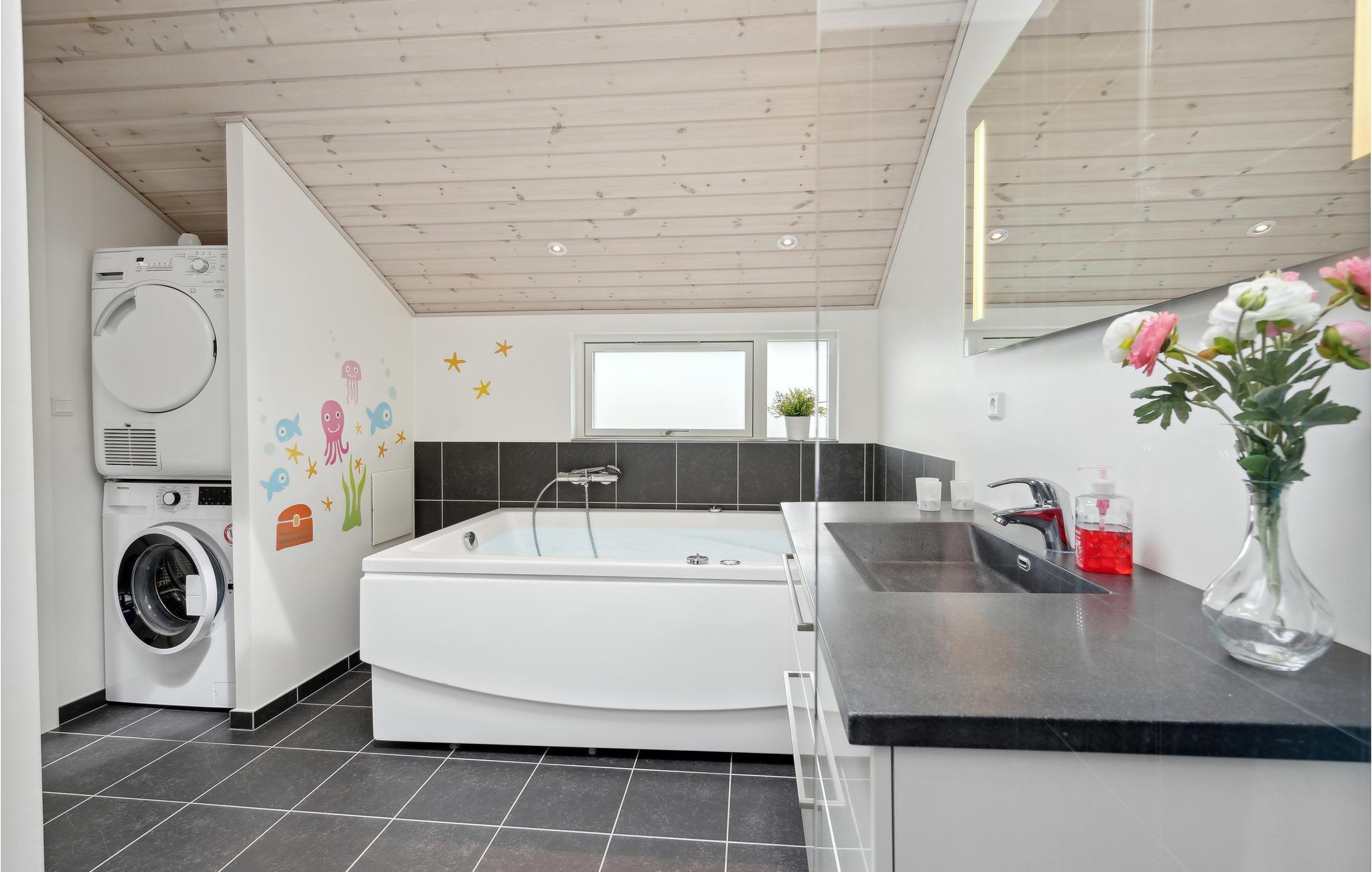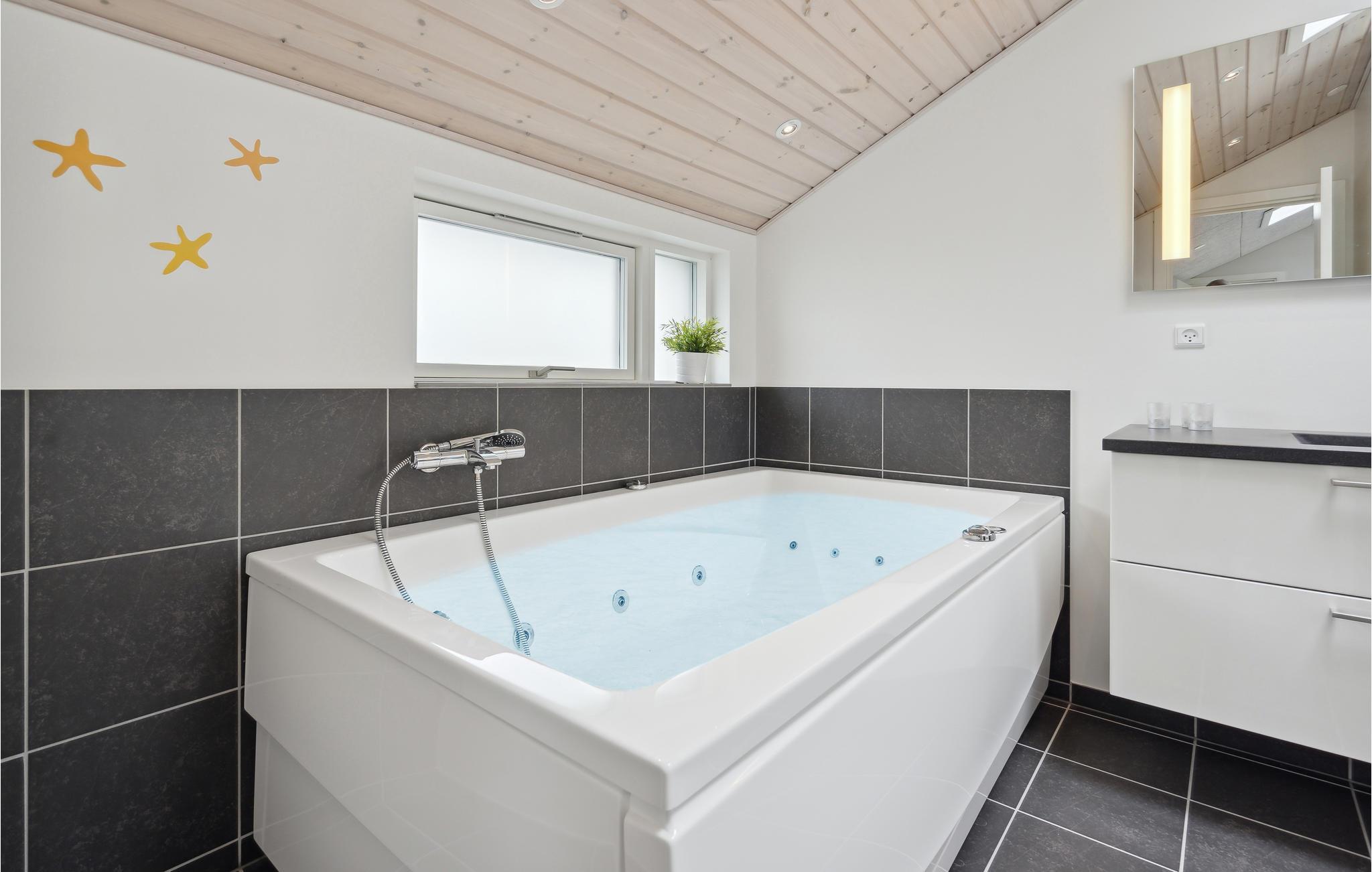 Nyd høj komfort i dette feriehus med spabad og sauna nær stranden.