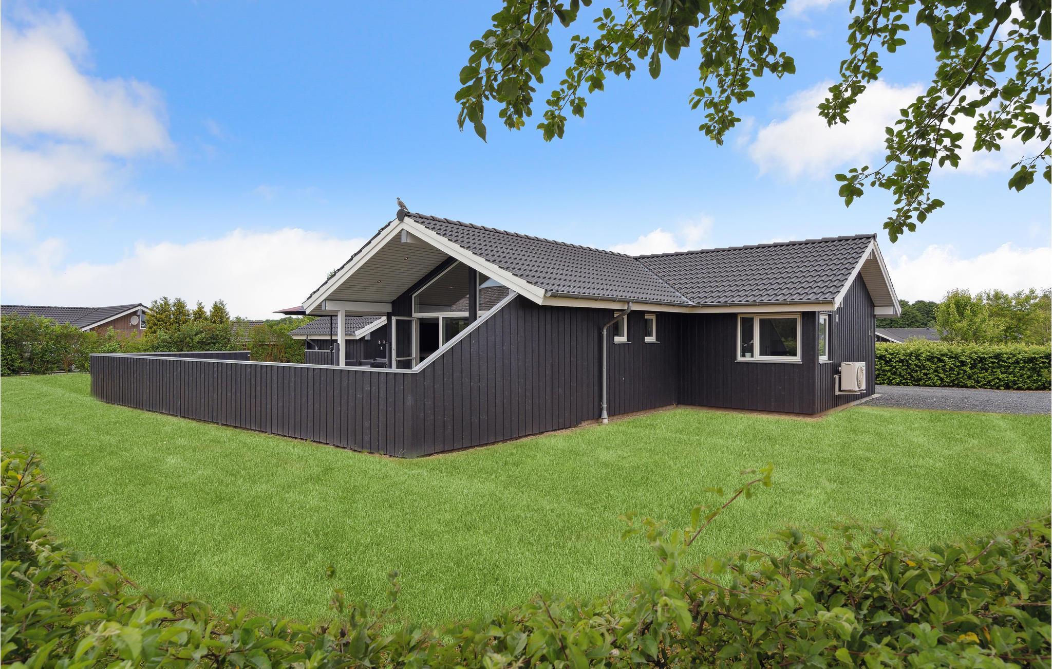 Hyggeligt feriehus med spabad og sauna tæt på Flovt Strand og fælles aktivitetsområde.