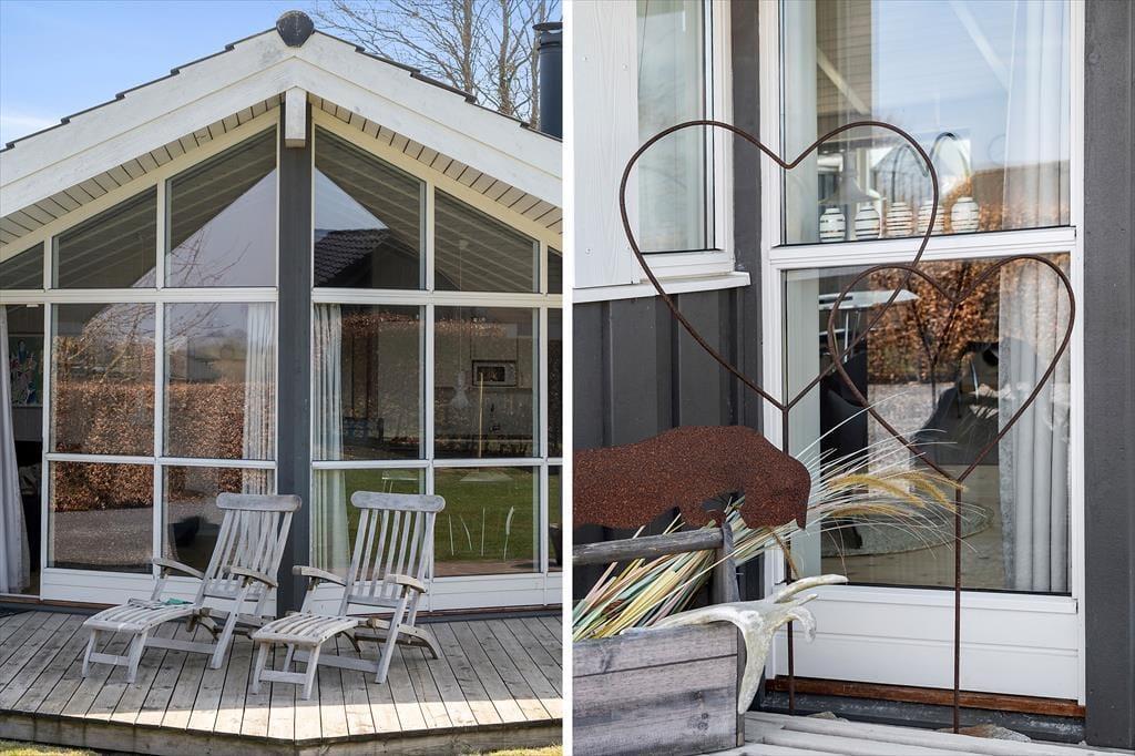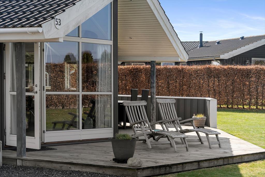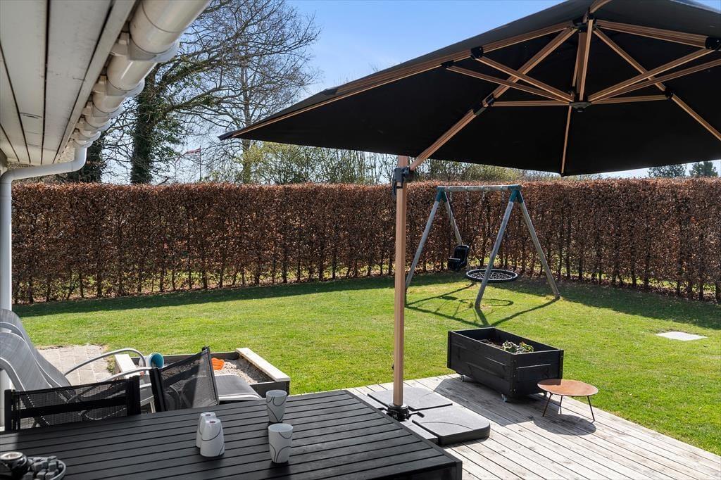 Det er udenfor, dette sommerhus virkelig folder sig ud som ferieoase. De store terrasser snor sig rundt om huset og gør det muligt at finde sol, læ og skygge – hele dagen. Start morgenen med kaffe og fuglekvidder på den østvendte terrasse, læn dig tilbage i liggestolen med en bog midt på dagen, og afslut med en god middag ved havebordet, mens aftensolen luner. Den lukkede have giver masser af plads til både leg og afslapning. Her kan børnene gynge og boltre sig i det fri, mens du tager et forfriskende udendørs brusebad i det lune sommervejr. Omgivelserne indbyder til ro og fordybelse, uanset om du er til aktivitet eller ren afslapning.