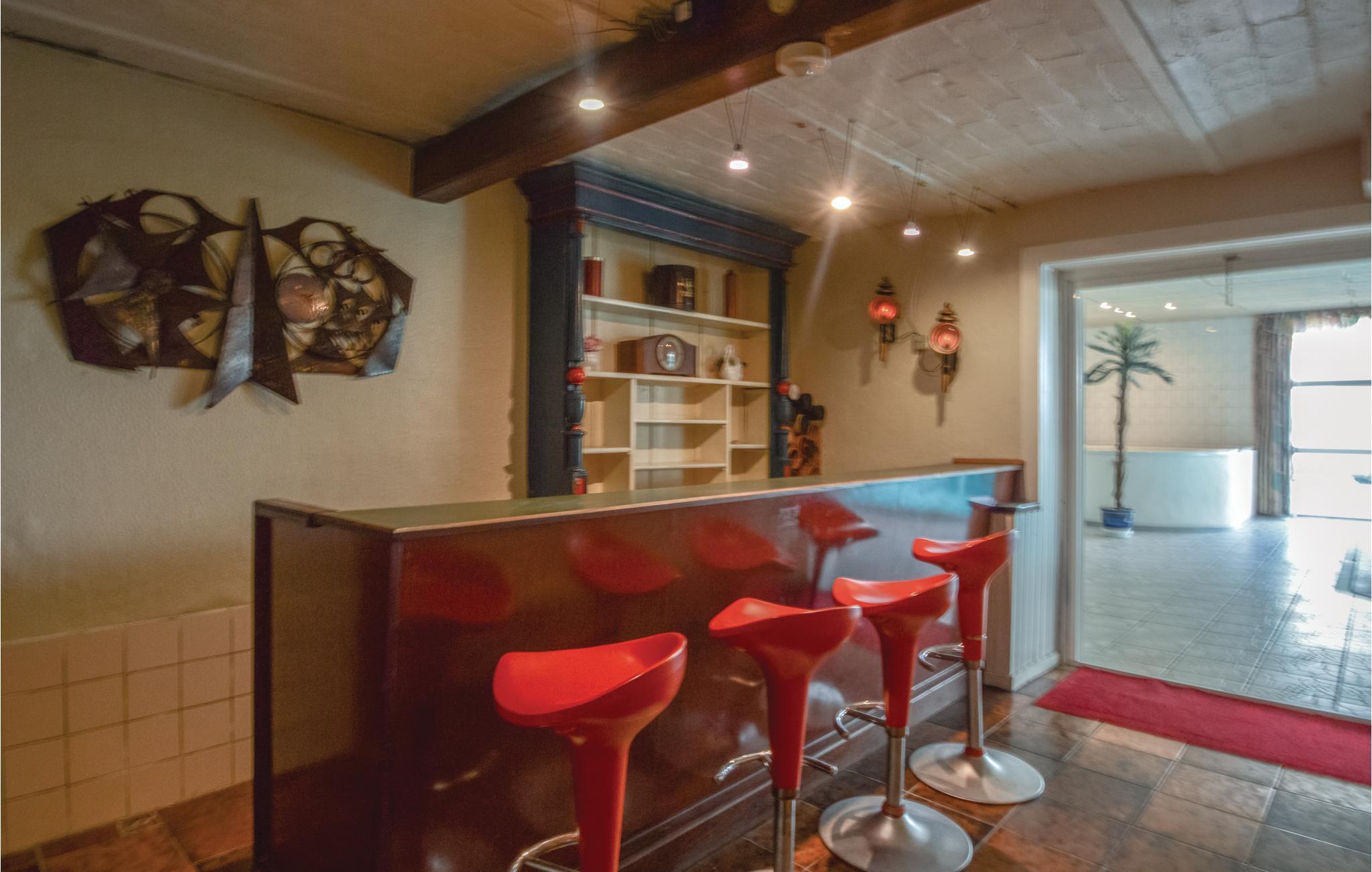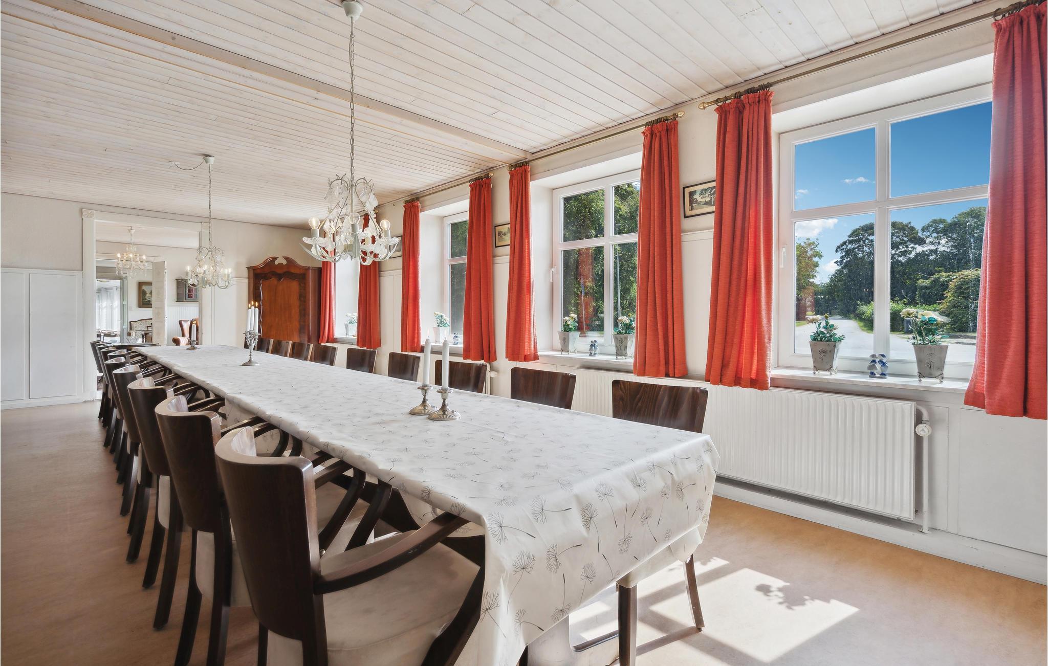 Idyllisk beliggende direkte ved Kongeåen ligger det tidligere Foldingbro Kro. Åen hører til de smukkeste vandløbsstrækninger i Danmark, og hovedparten slynger sig gennem græssede enge. Det snoede vandløb har klart vand med en frodig plantevækst. Kun den nederste del vest for Gredstedbro er reguleret. Kongeåen er et sandt fiskeparadis og Foldingbro har sin egen private fiskeplads, hvor aftensmaden kan fanges (kun 16.04-31.10. Fiskekort skal købes). En kanotur er også en oplagt mulighed, her opleves naturen på smukkest vis fra 'vandsiden'. Udflugtsmulighederne er utallige i det gamle grænseland, hvor Ribe, Danmarks ældste by, absolut skal besøges. Foldingbro Kro fremstår i dag, som et yderst charmerende ferieidyl efter en nænsom modernisering. Her finder I til overmål, aktivitets- og udfoldelsesmuligheder for hele familien i de store, lyse rum. Stueetagen: Husets midtpunkt udgøres af den store spisestue, lige velegnet til større familiesammenkomster, som til en hyggelig intim middag i venners lag. I det velindrettede køkken og det tilstødende anretterværelse, kan 'hobby'-kokken virkelig lade kogekunsten stå sin prøve. Poolafdelingen er et kapitel for sig, her er tænkt på alt. Når I har taget en dukkert i den enorme swimmingpool, kan I slappe af i det 4-personers store spabad eller gå i den infrarøde sauna, der opvarmer kroppen på en behagelig måde og afhjælper ømme muskler. Beskrivelsen fuldendes af to velplacerede badeværelser. Efter at I er varmet godt igennem, er tiden inde til sportslig adspredelse i det store aktivitetsrum, enten et slag bordtennis eller en duel på Playstation. 1. sal: Huset råder over i alt 13 velindrettede soveværelser, hvoraf de 10 er med dobbeltseng. Desuden er der hele fem lækre badeværelser til disposition for de overnattende gæster. På den smukt beliggende grund og med udsigt til Kongeåen står en 85 m2 havepavillon til rådighed, som er perfekt til mindre sammenkomster hvad enten det er familiefest, firmaarrangement eller et romantisk bryllup.