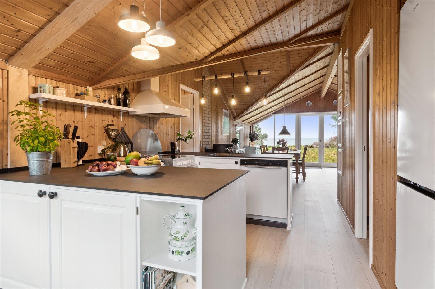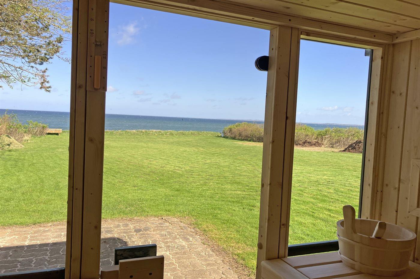 Huset er hyggeligt indrettet med køkken, spiseplads og stue ud i ét, og herfra er der en flot udsigt over havet og udgang til terrassen. Huset opvarmes energivenligt med luft-til-luft varmepumpe, og til de hyggelige stunder er der brændeovn. Der er 3 soveværelser med hver 2 sovepladser og et badeværelse med bruseniche og gulvvarme. Der er tillige vaskemaskine, udendørs sauna og udendørs bruser (tilgængelig fra 1. april til 31. oktober). På de gode terrasseområder er der rig mulighed for at nyde solen og finde skygge og læ.