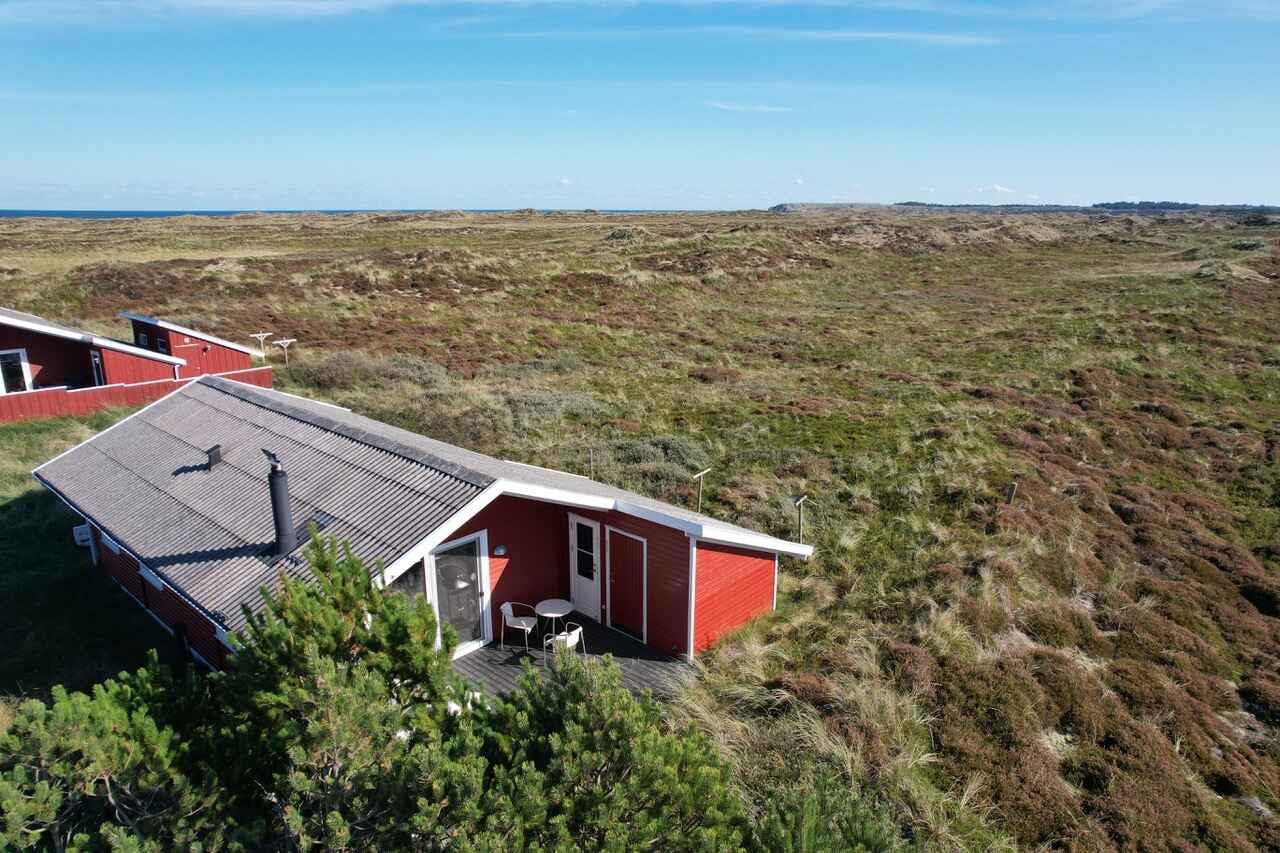 Velholdt sommerhus på naturgrund. Huset ligger helt fantastisk med to store vinduespartier, der giver frit udsyn over den fredede klithede. Naturen kommer så at sige ind i stuen, og vi har set krondyr og rådyr m.m. lige uden for huset. For enden af klitheden, 5 kilometer øst for huset, kan man se Bulbjerg-kammen hæve sig over landskabet. Området er også kendt som Dark Sky Park Bulbjerg og er et godt sted at kigge stjerner. Fra huset er der fri udsigt mod nordøst, øst og syd, og husets to terrasser vender ud mod den storslåede natur med flere vandreture lige uden for døren. 600 meter nordvest for huset ligger Vesterhavet. 5 kilometer syd for huset er der et stort fuglereservat, der strækker sig ca. 10 kilometer syd over ned til Limfjorden. Vest for Lild Strand er Danmarks længst ubebyggede kyststrækning. Øst for huset er der 15 kilometer til den næste lille ferieby Thorupstrand. Kort sagt: huset ligger i et naturområde med mulighed for mange forskellige oplevelser. På landingspladsen, hvor fiskerbådene trækkes på land, er der bygget kystterrasser, hvor du kan nyde solnedgangen, og et glashus, hvor du kan nyde din medbragte mad og udsigten over havet. Sommerhuset er godt indrettet og udstyret bl.a. med tv, Chromecast og wi-fi samt en god brændeovn. Huset ligger i et godt sommerhusområde med fælles legeplads. Lild Strand er et lille fiskerleje med mulighed for at købe frisk fisk direkte fra bådene. Tidligere lejere giver 4,4 stjerner ud af 5. Obs, udlejes ikke til erhversmæssigt brug.