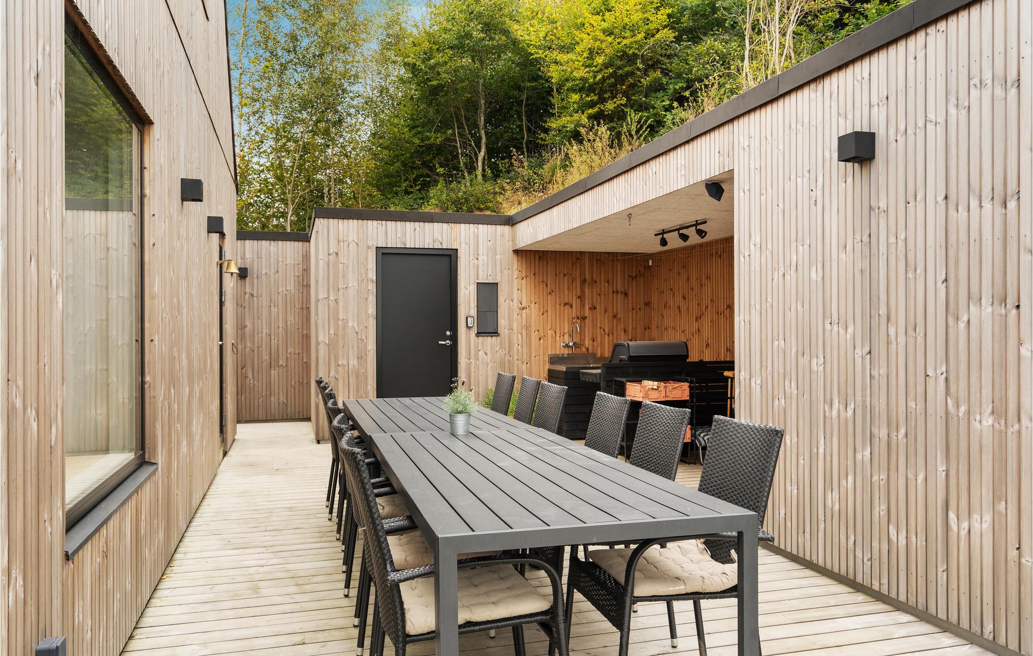 Nyd jeres næste ferie i dette moderne feriehus i naturskønne rammer med panoramaudsigt ud til fjorden.