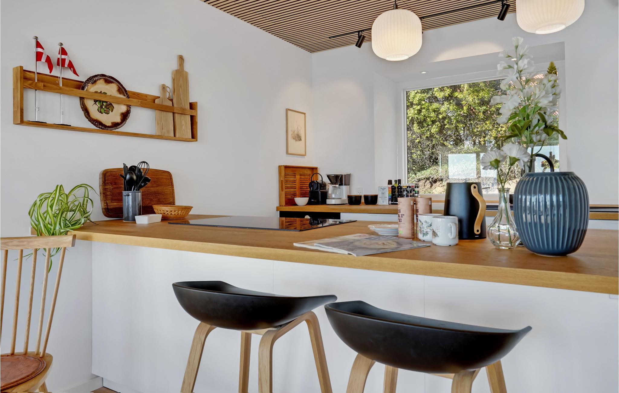 Ingen tvivl om, at dette hus er noget helt særligt. Her flytter I ind i en moderne bolig, hvor der er lagt vægt på kvalitetsmaterialer, en lys og enkel farveskala og en atmosfære, der gør, at man kommer helt i zen. Sæt jer i det store opholdsrum og læn jer tilbage i sofaen - I behøver faktisk ikke anden underholdning end den vidunderlige udsigt, som I får gennem vinduerne her.