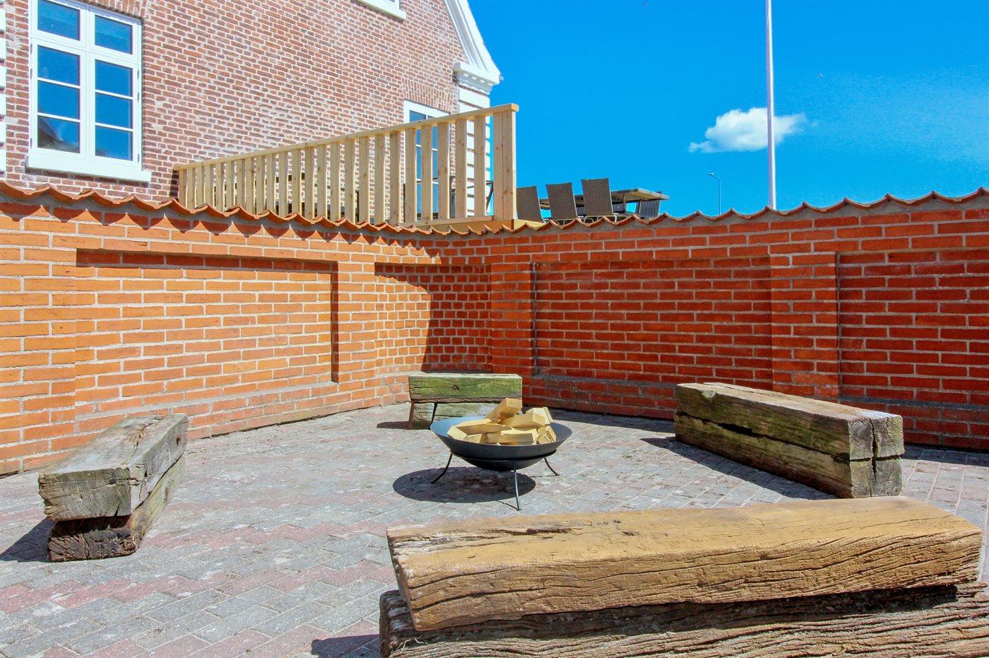 Ferieboligen er beliggende på en 800 m² stor naturgrund. Der er 50 m til havet. Nærmeste forretning er beliggende i en afstand af 400 m. Til ferieboligen hører åbent terrasseareal. Udgang til altan. Bålsted. Grill til rådighed. Der er garage til rådighed. Der er installeret stik til opladning af elbil. Parkering ved ferieboligen.