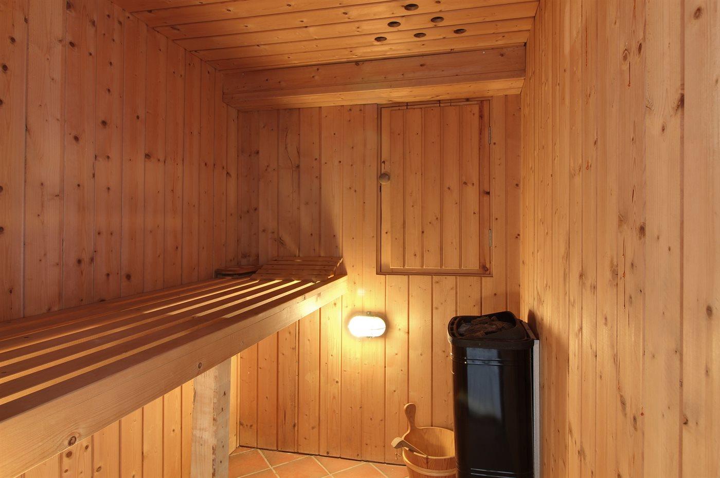 Der er 2 badeværelser med bruseniche og 2 toiletter. Der er gulvvarme på 2 badeværelser. I saunaen er der mulighed for afslapning.
