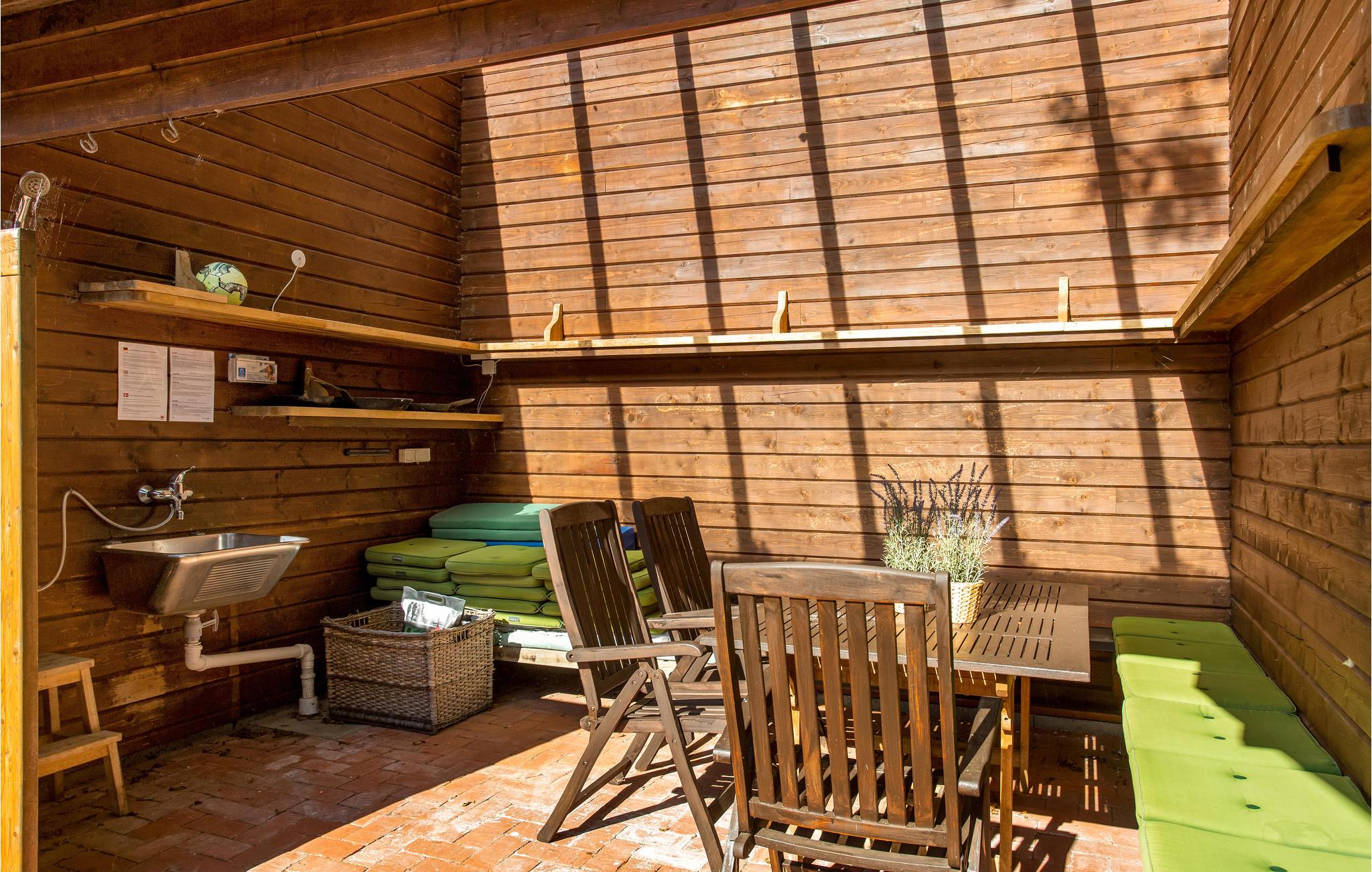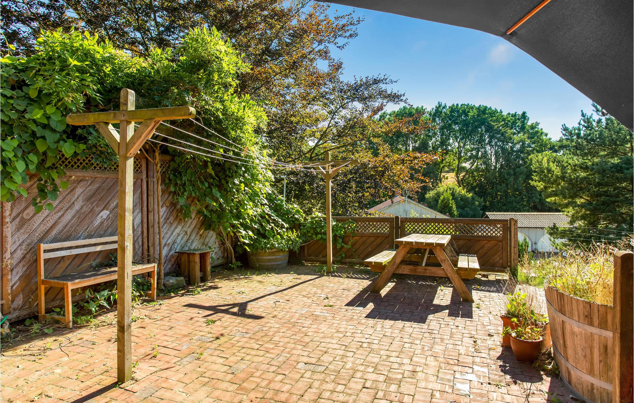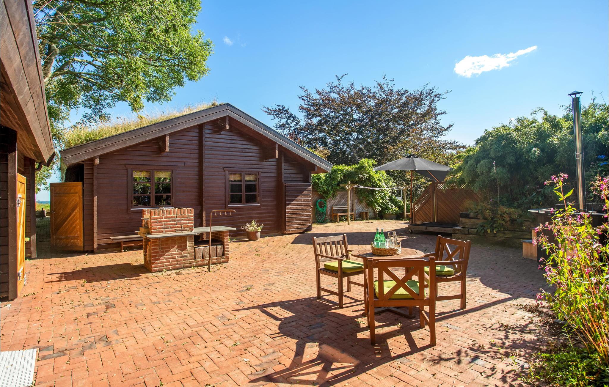 Med til huset hører en stor grund med gårdhave, mange gode solkroge, udekøkken og naturligvis det lækre vildmarksbad. På en af terrasserne kan I nyde morgenkaffen med udsigt til Kattegat og Læsø og tilbringe de lange, lyse sommeraftener med at grille, mens I lytter til fuglefløjt. Skoven er meget tæt på, så I vil tit opleve løvfald i haven og på terrassen. I har også adgang til et stort, aflåseligt depotrum til opbevaring af cykler, fiskegrej m.m.