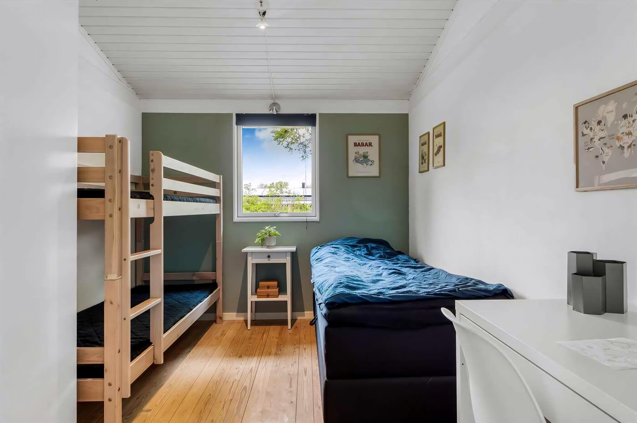 Dette dejlige aktivitets-sommerhus ligger kun et stenkast fra den børnevenlige badestrand i Frederikshavn PALMESTRANDEN, og i kort afstand fra Frederikshavn by, hvor der er færgeafgange til både Læsø og Sverige. Der er en dejlig legeplads 150 m fra huset med græs sti system der til. Ca. 500 meter fra huset ligger der desuden et stort indendørs legeland (Fun House).Minigolfbanen ligger lige der ved. Der findes en restaurant ved Rønnehavnen, som ligger en lille km fra huset, hvor du også finder den for området kendte Palmestrand. Desuden er der opført et nyt padel-center i området og der Frederikshavn golfbane (18 huller) inden for 2,5 km. Alt i alt et dejligt sommerhus velegnet til både familier og par - med gode muligheder for lange gåture i den flotte natur. Sommerhuset egner sig til 5 personer samt 1 barn op til 3 år. Ferieboligen er på 119 m² og er bygget i 1972. I 2023 gennemgik ferieboligen en delvis renovering. Det er tilladt at medbringe 2 husdyr. Ferieboligen er udstyret med 1 energivenlig luft til luft varmepumpe. Ferieboligen har vaskemaskine, tørretumbler. Der er desuden brændeovn. Til de små er der 1 stk. barnestol, Puslebord og weekendseng Ferieboligen er beliggende på en 1464 m² stor naturgrund. Der er 350 m til havet. Nærmeste forretning er beliggende i en afstand af 800 m. Til ferieboligen hører åbent terrasseareal. Der er redskabsrum. Fodboldmål. Grill til rådighed. Der er carport samt rigelig plads til ekstra parkering ved ferieboligen. I aktivitetsrummet er der følgende udstyr: Bordtennis. Dart. Airhockey. Mini bordfodbold. Der er i alt 2 soveværelser. Sovepladserne fordeler sig på: 1 soveplads i enkeltseng. 2 sovepladser i køjeseng. 2 sovepladser i elevationssenge. Vaskemaskine og tørretumbler. Køkkenet er udstyret med 1 køleskab og 1 fryseskab. Der er 4 induktionskogeplader, varmluftovn, mikrobølgeovn samt opvaskemaskine.