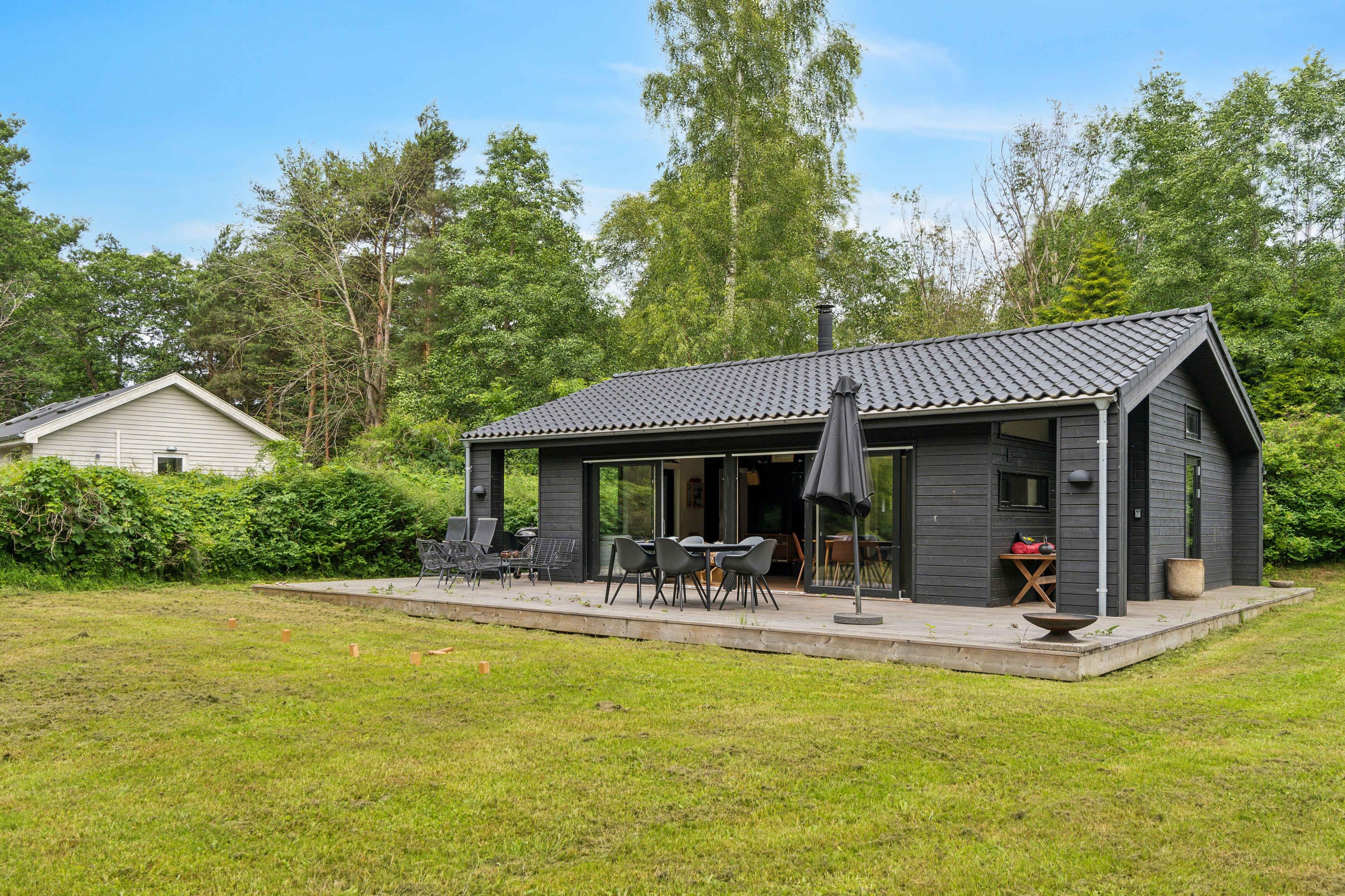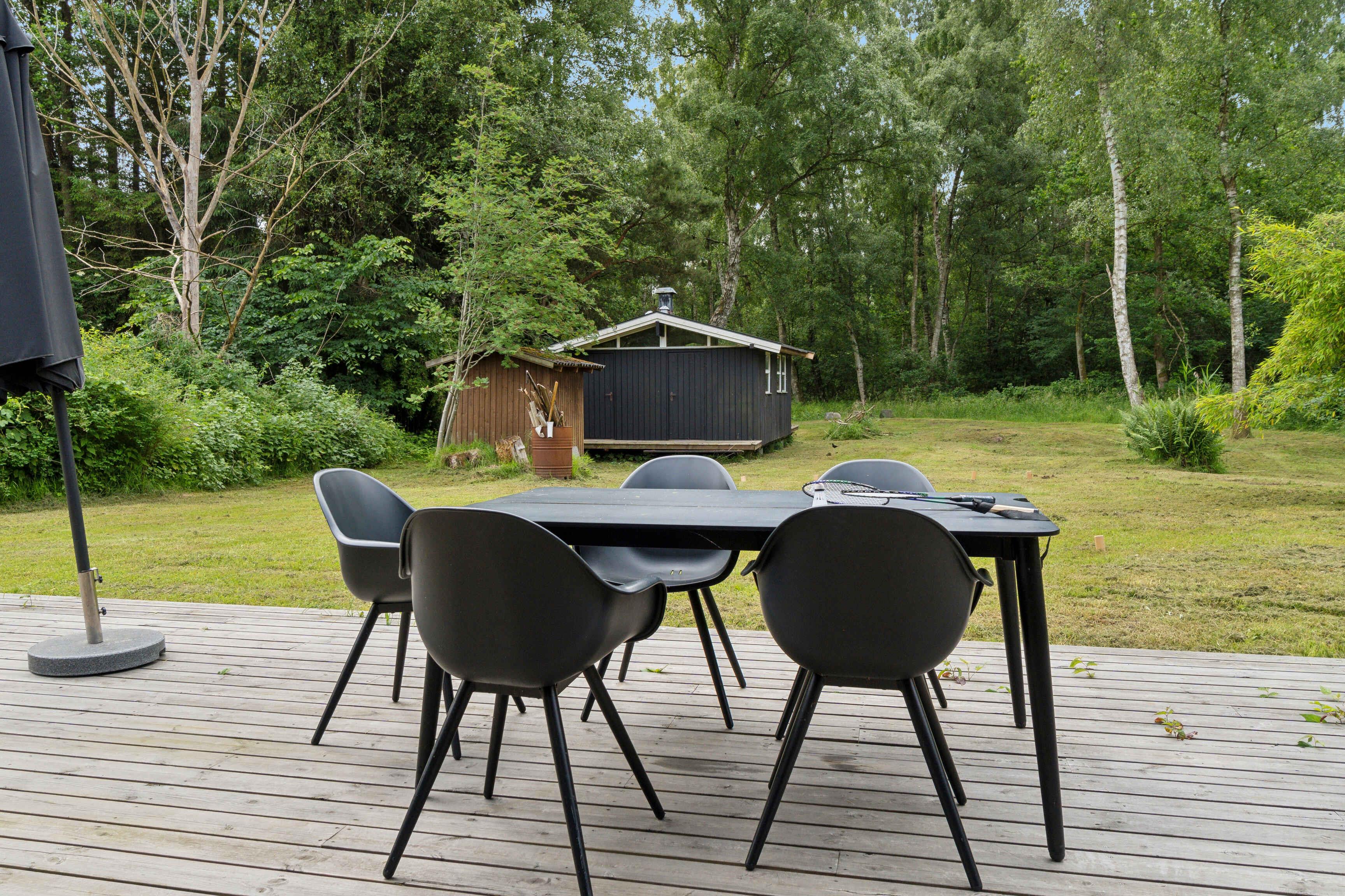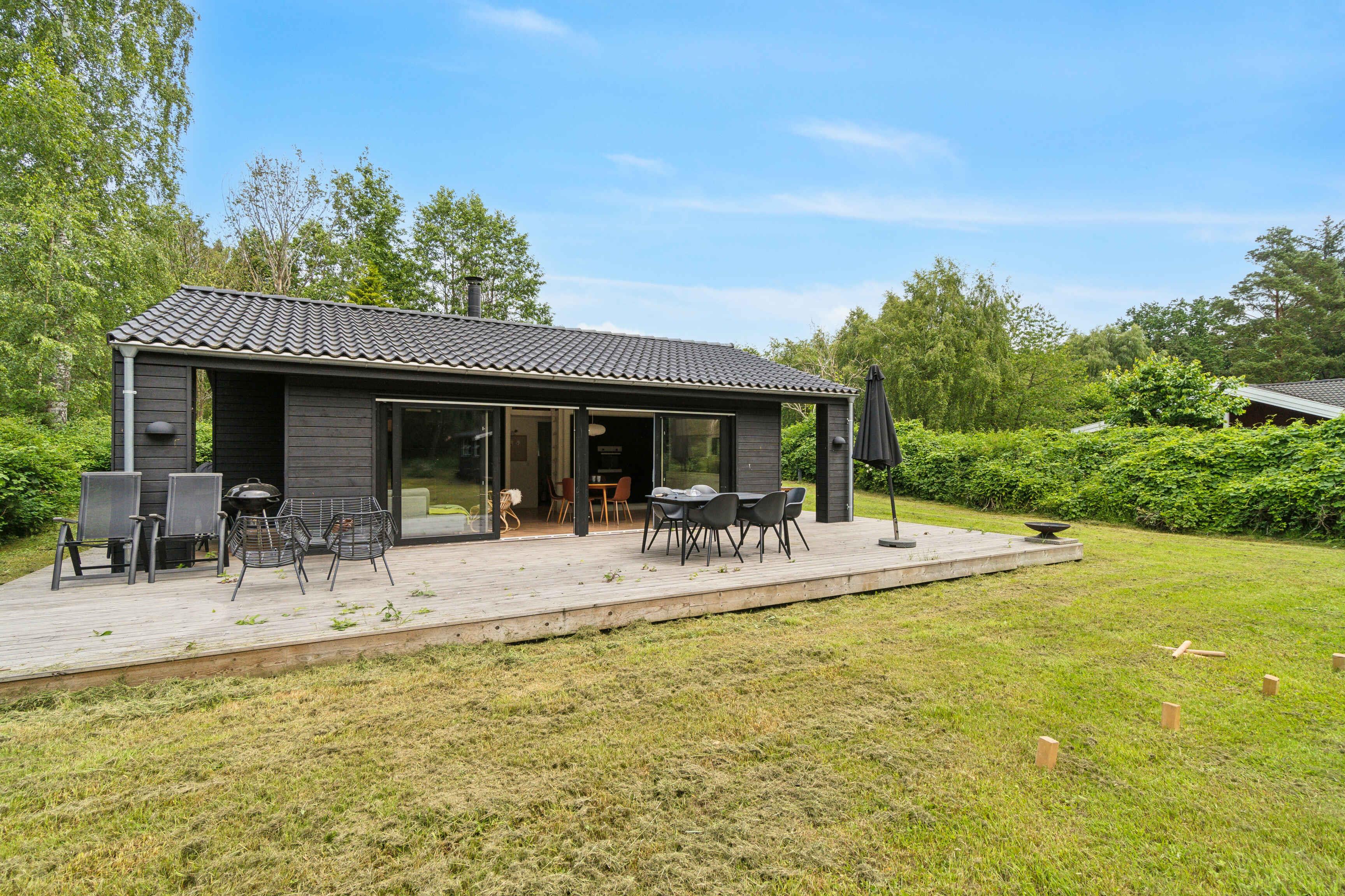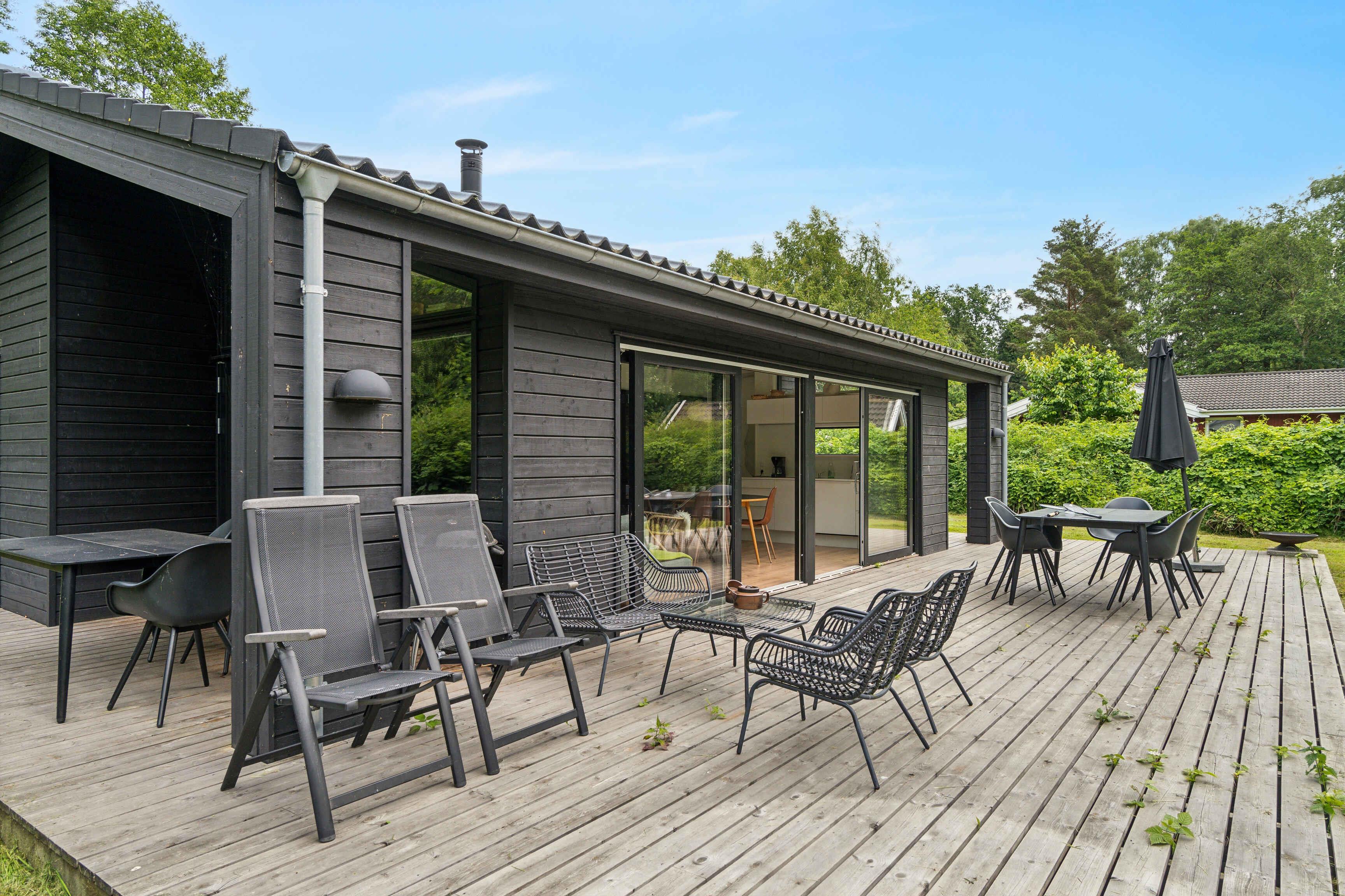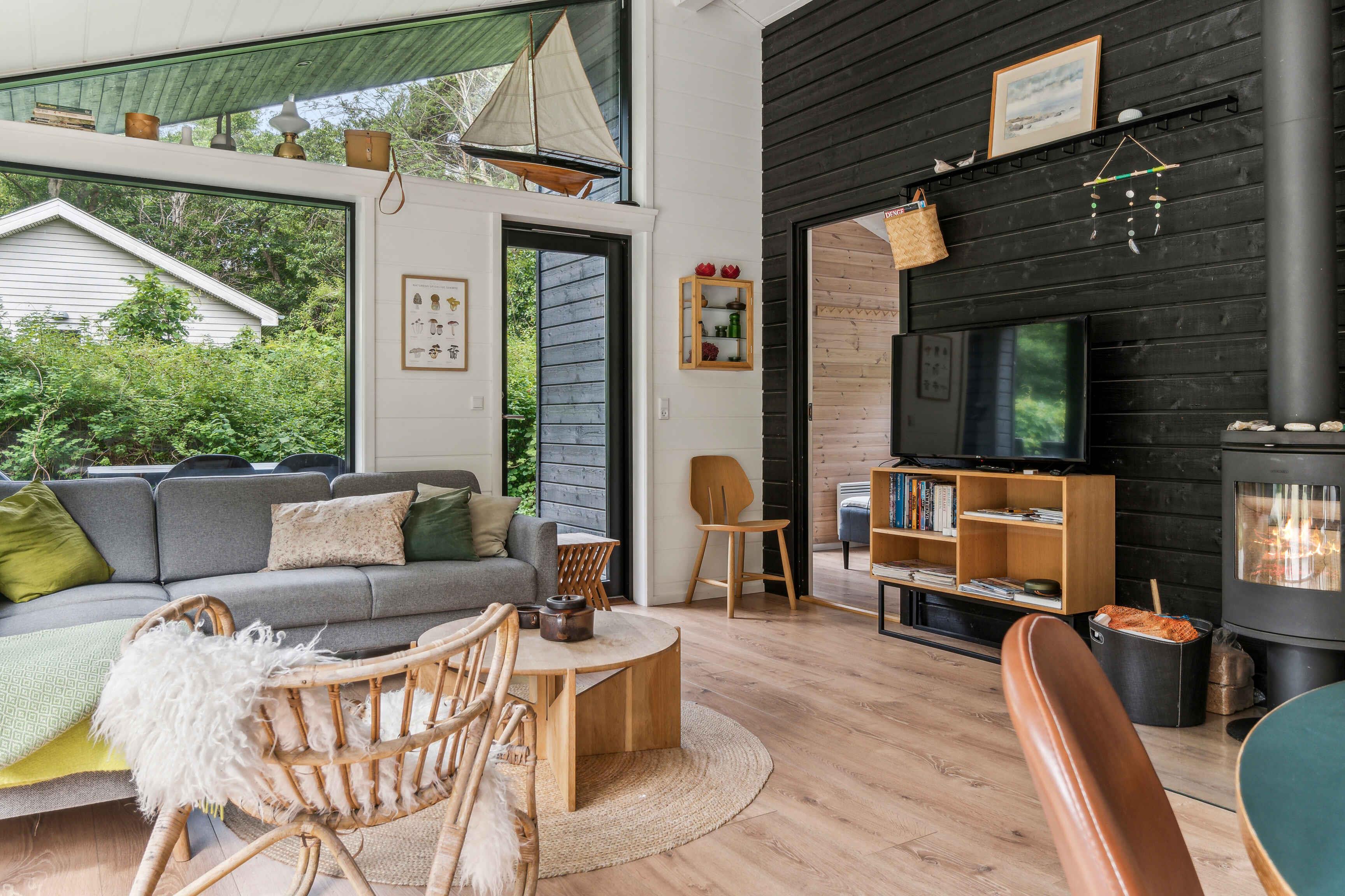 Moderne sommerhus i Asserbo med skovudsigt, terrasse, brændeovn og gratis WiFi, ideelt til afslapning i naturskønne omgivelser.