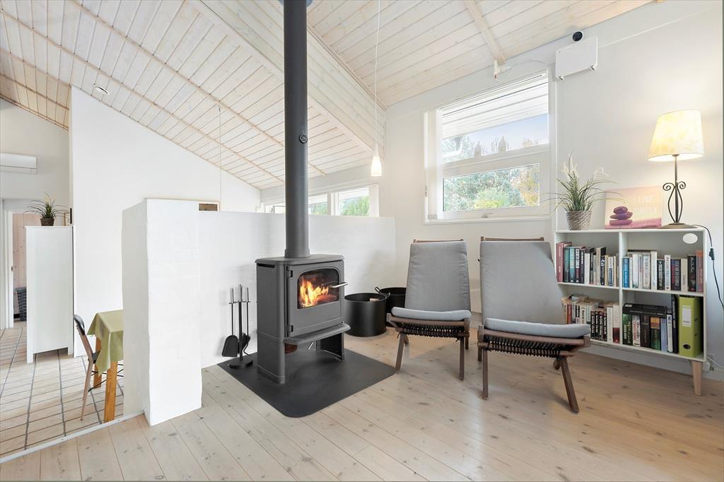 Kom indenfor og oplev en stor, hyggelig stue, hvor en komfortabel sofa og pejsen danner rammen om hyggelige stunder. Huset har tre soveværelser med dobbeltsenge og en ekstra sovesofa, hvilket gør det muligt at samle op til 6 voksne og 2 børn under samme tag. Det åbne køkken er fuldt udstyret med moderne faciliteter – her finder I både køle-fryseskab, mikroovn, opvaskemaskine, vaskemaskine og tørretumbler. Et badeværelse med toilet og bruseniche. Masser af lys strømmer ind og skaber en dejlig, afslappet atmosfære.