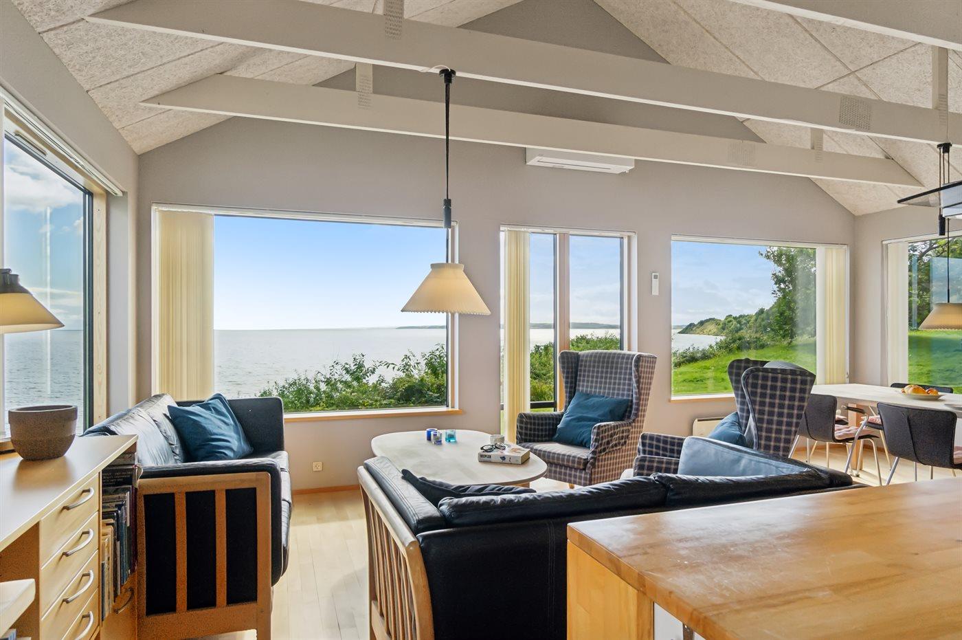 Skønt sommerhus i absolut første række ved Fuglsø Strand. Huset har den skønneste udsigt over Ebeltoft Vig og egen adgang til den fine sandstrand lige foran. Her kan man ikke undgå at blive betaget af udsigten.