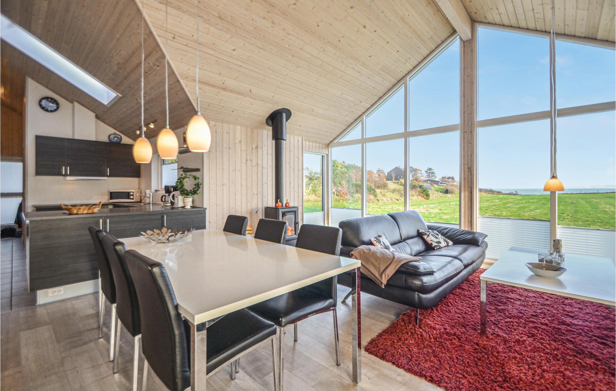 Topmoderne sommerhus med havudsigt nær Fuglsø Strand, ideelt til aktiv ferie med sauna og spabad.
