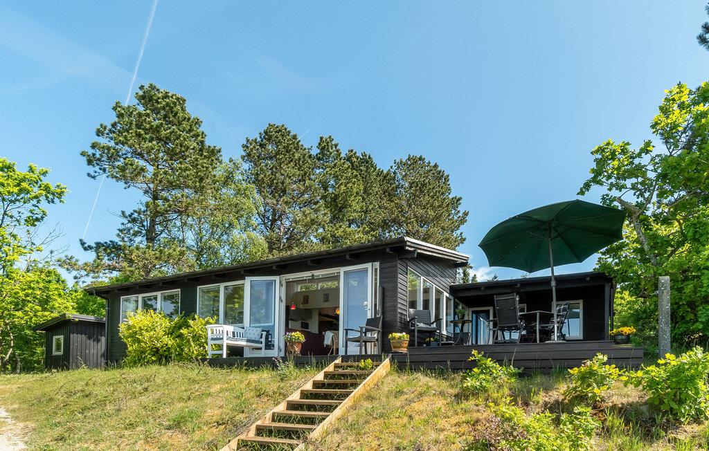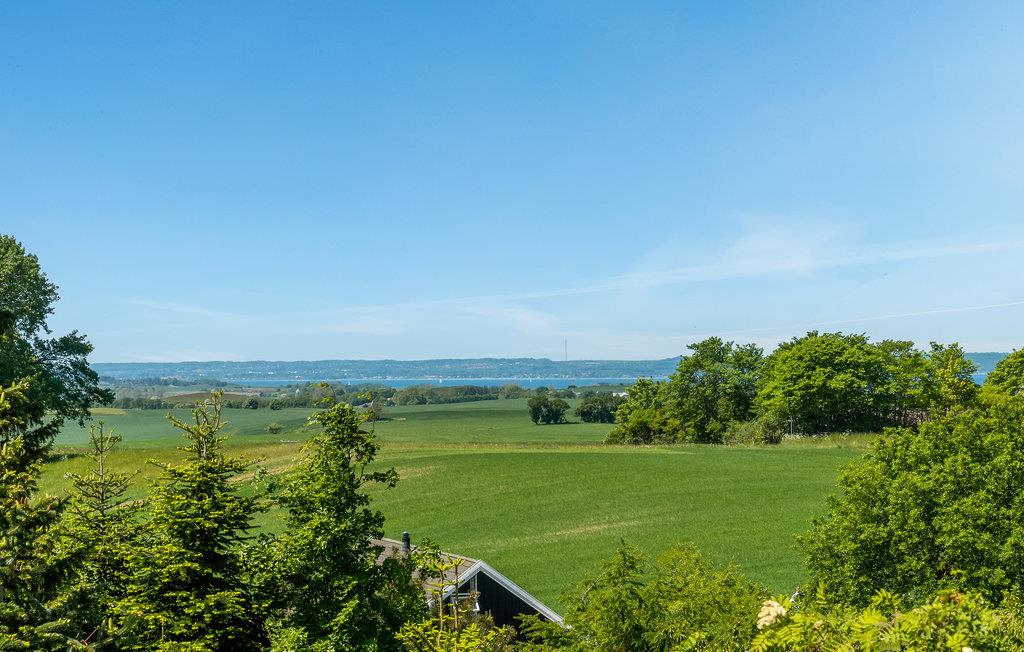 Arkitekttegnet sommerhus med panoramaudsigt og hyggelig bålplads nær Syddjurs' natur og strand.