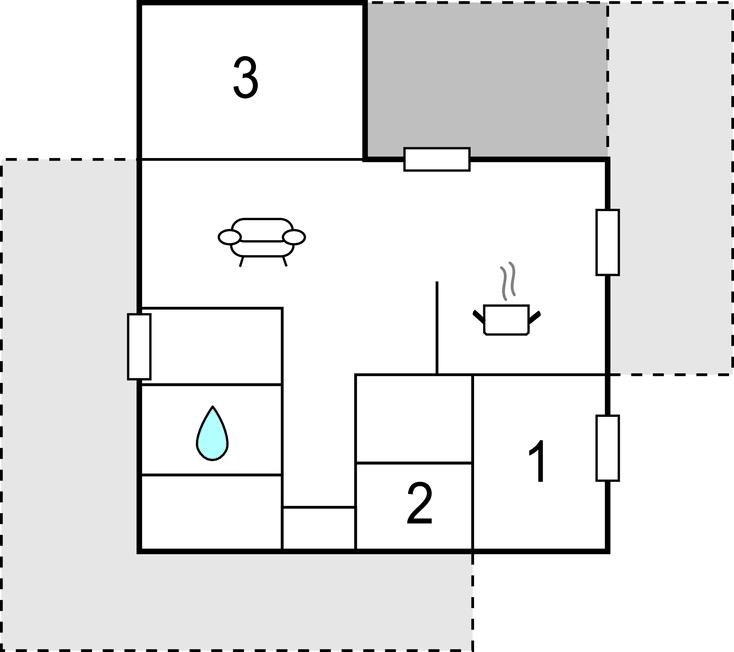 Opholdsstue - 2 Sovepladser. (Enkeltseng(e)).
