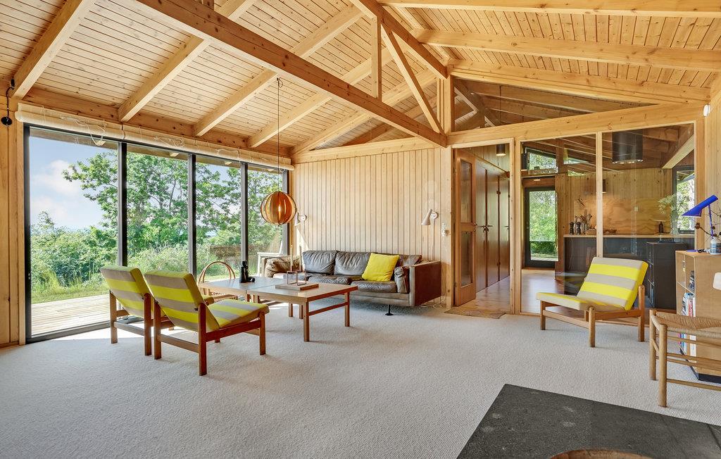 Indbydende sommerhus ved Fuglsø Strand med panoramaudsigt og stort naturgrund, perfekt til afslapning og naturoplevelser.