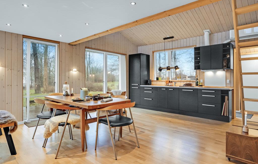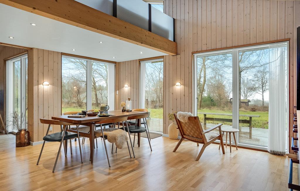 Det åbne køkkenalrum er husets omdrejningspunkt med flere dejlige siddekroge, hvor udsigt til natur og hav kan nydes indefra. Brændeovnen fuldender hyggen på de kølige dage. Blandt husets gode værelser finder I en dejlig, stor hems, hvorfra udsigten kan nydes til flere sider. Hemsen har ståhøjde og består af en lille stue, som børnene vil elske at have som deres base.