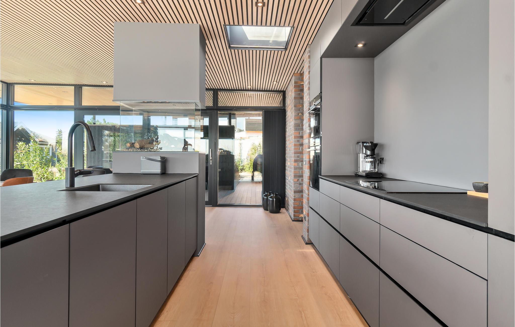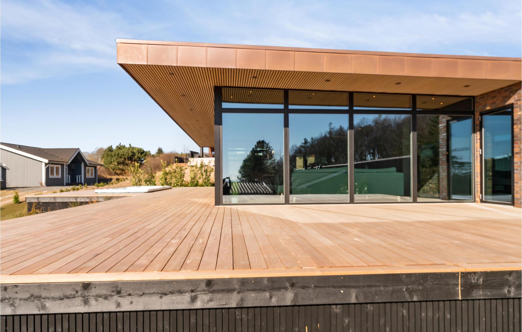 Er det første ord, der undslipper jeres læber et 'wow'? Så er I nok ikke de første. Dette hus er et sandt udstyrsstykke og bliver en helt fantastisk base til jeres ferie. Her venter der førsteklasses materialer, moderne løsninger og flotte detaljer overalt. Hver morgen kan I nyde en vidunderlig udsigt til det bakkede landskab og havet fra stuen. Sæt jer med dagens første kop kaffe på terrassen, mens solen varmer terrassen op.