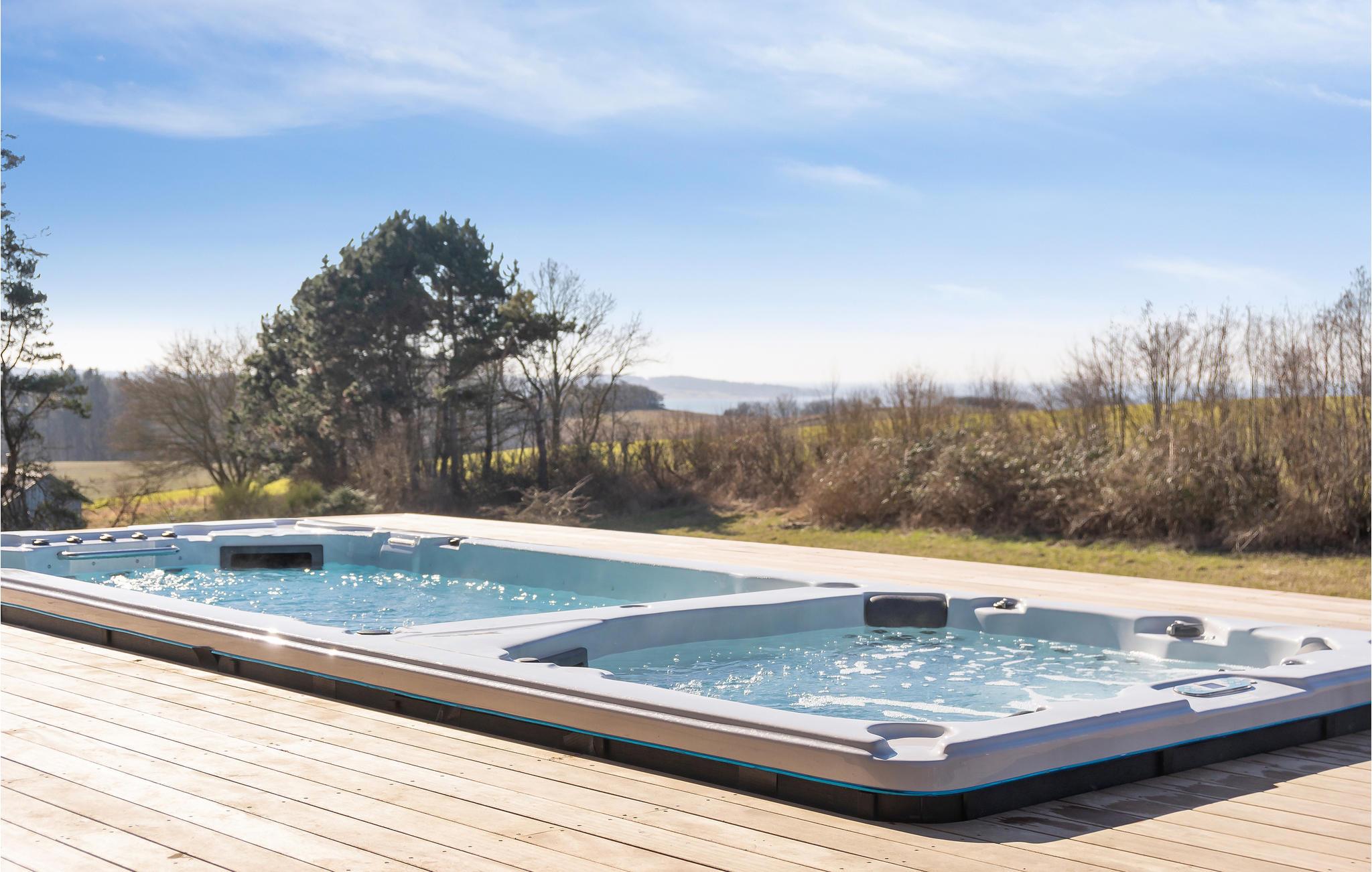 Toplækkert feriehus i Knebel med havudsigt, sauna, udendørs pool og moderne faciliteter for en uforglemmelig ferie.