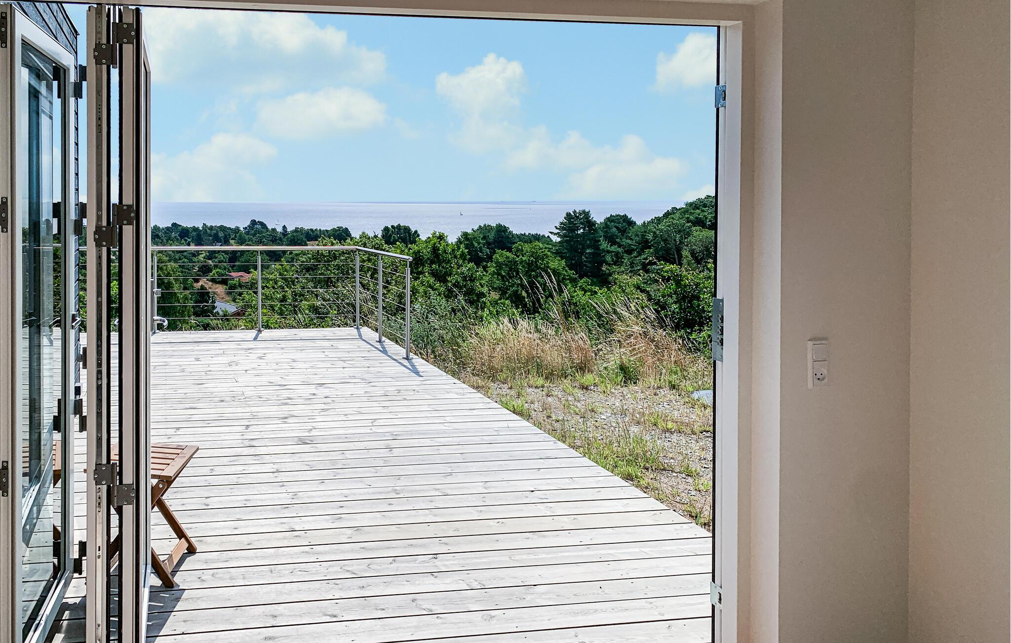 Luksuriøst minihus ved Nationalpark Mols Bjerges med panoramaudsigt, stor terrasse og moderne faciliteter.