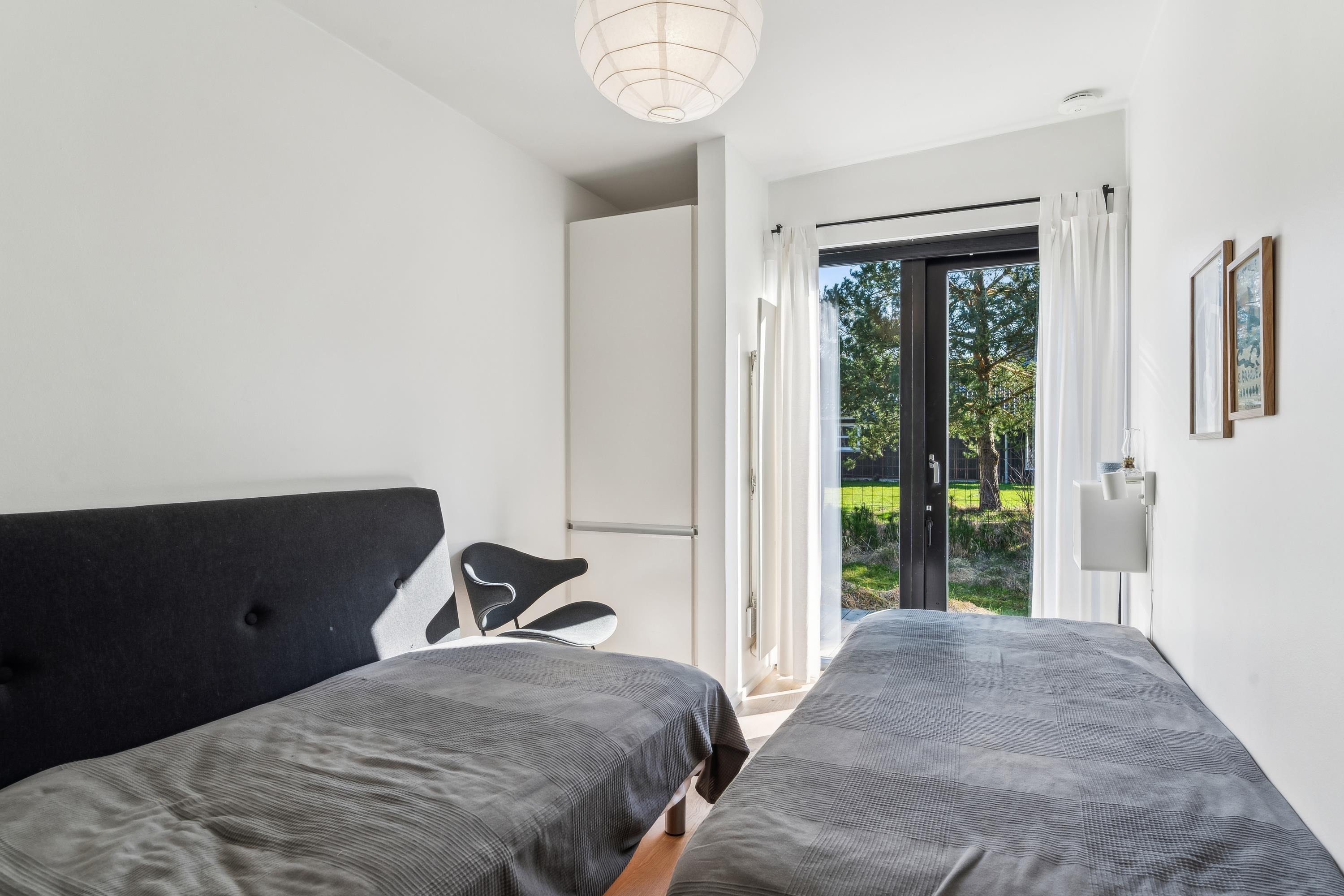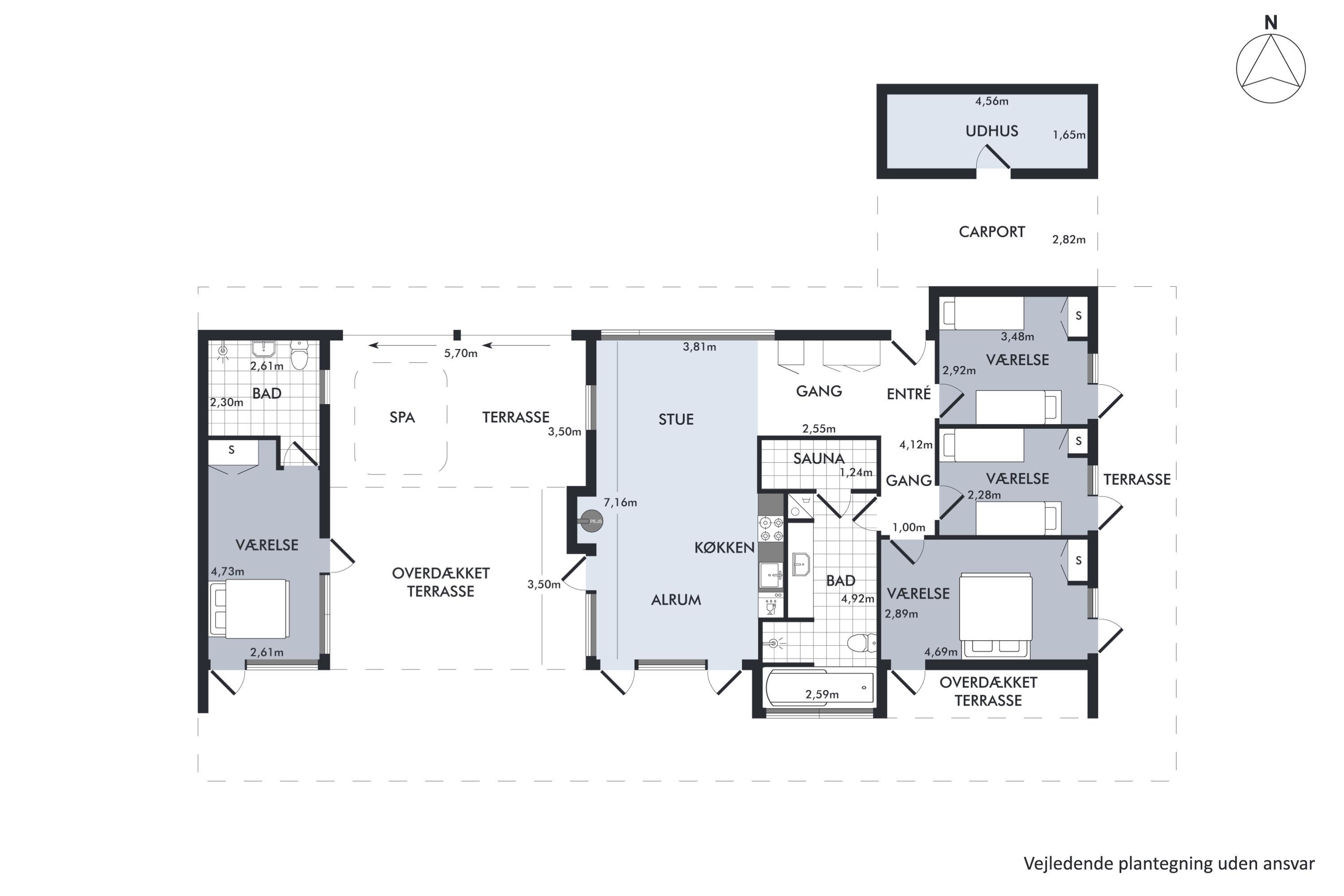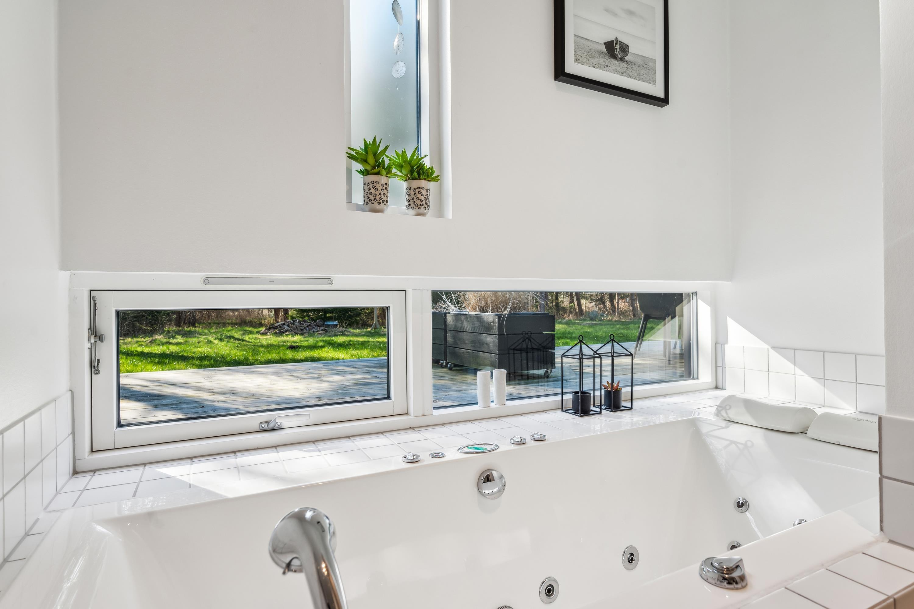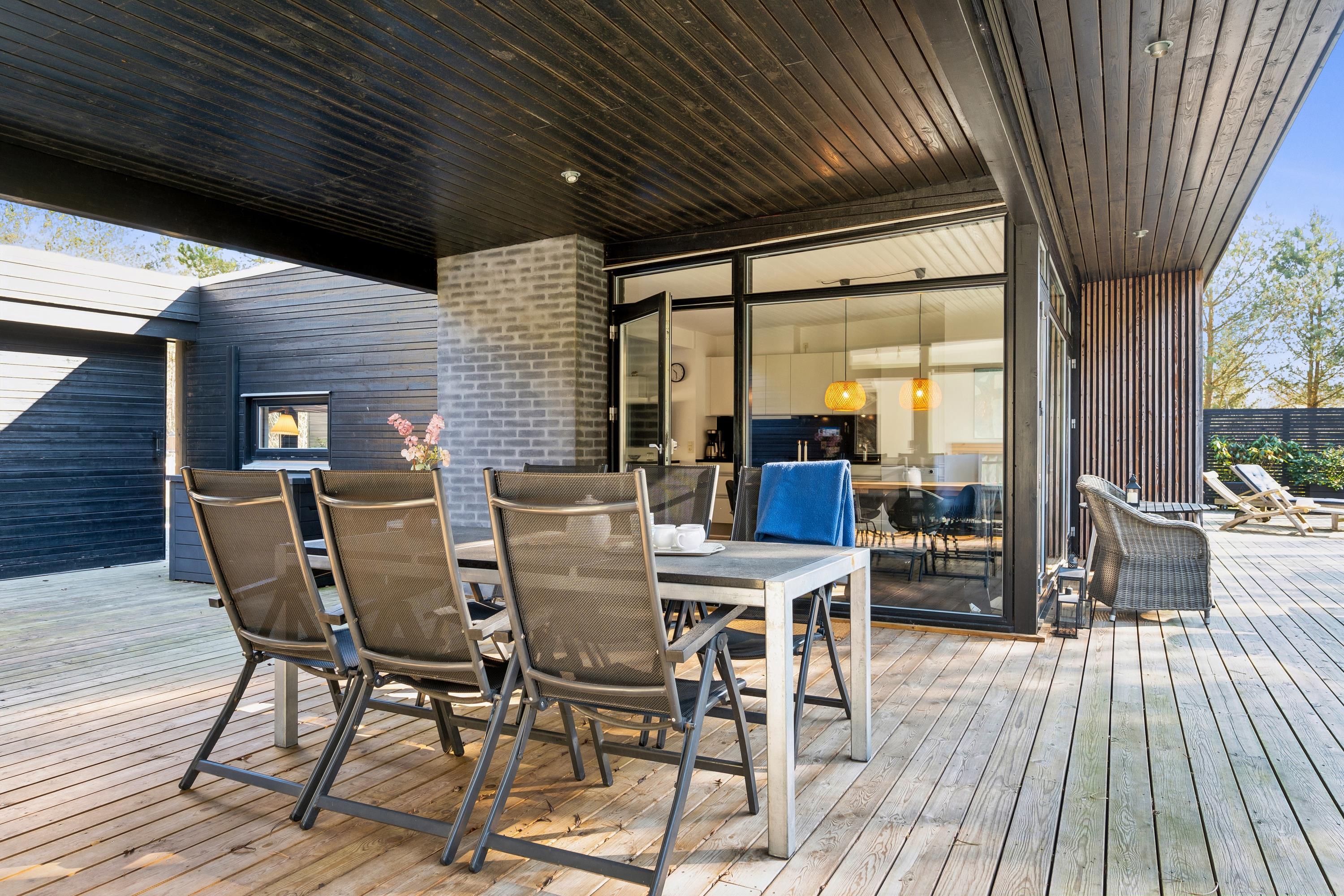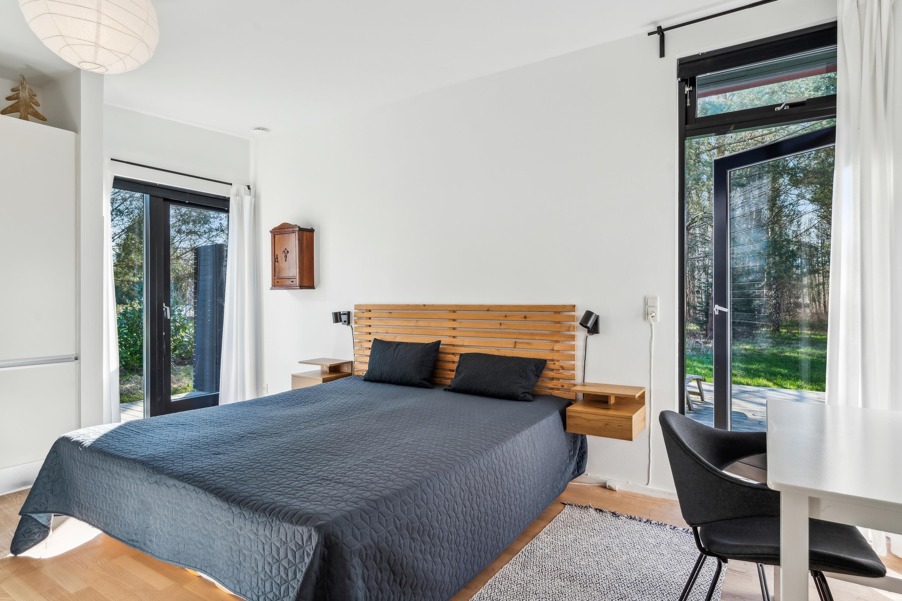 I skovens dybe stille ro bliver man budt velkommen til dette helt unikke feriehus. Huset er beliggende på en 6000 m2 stor naturgrund med masser af plads til udendørs leg og hygge. Her finder man en dejlig lys og indbydende stue, hyggeligt møbleret med gode møbler, pejs og varmepumpe. Flot køkken med en dejlig spiseafdeling. Sovepladserne finder man i tre gode værelser, alle med udgang til terrasse. Flot badeværelse med adgang til sauna, vaskemaskine og tørretumbler og her finder man også et nedsænket spa-bad, hvor der er mulighed for at ligge og kigge ud i haven. Fra stuen er der udgang til stort overdækket terrasseareal med havemøbler og hvor man finder den lækre udendørs-spa. Her finder man også husets flotte møblerede anneks med en god dobbeltseng og eget badeværelse. Rigtig velegnet til nogle større børn eller et hold bedsteforældre som har brug for at trække sig tilbage i fred og ro. Der er masser af åben terrasser også og her finder man også gode havemøbler og liggestole. Et virkelig flot feriehus, velegnet til to familier eller en større familie.