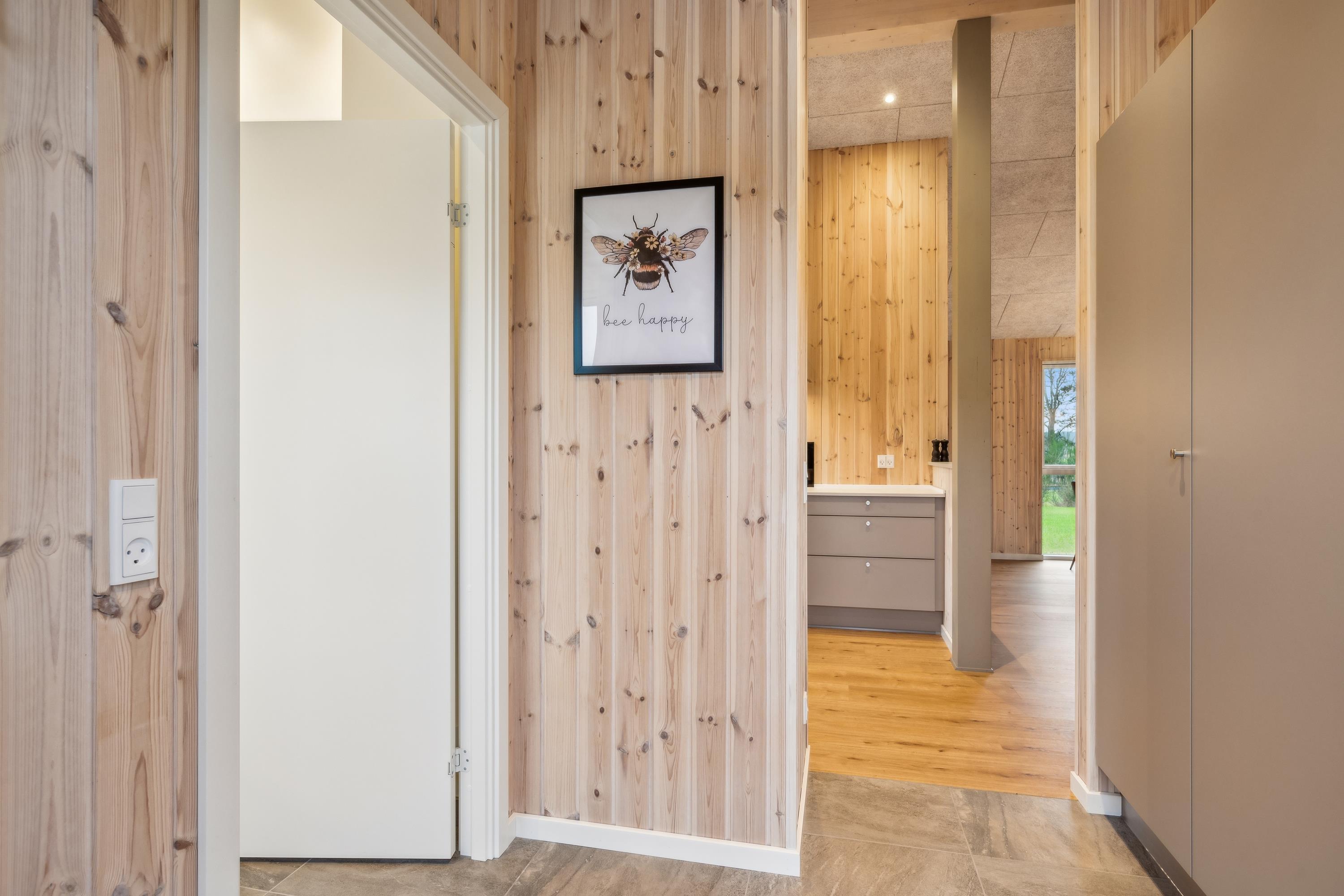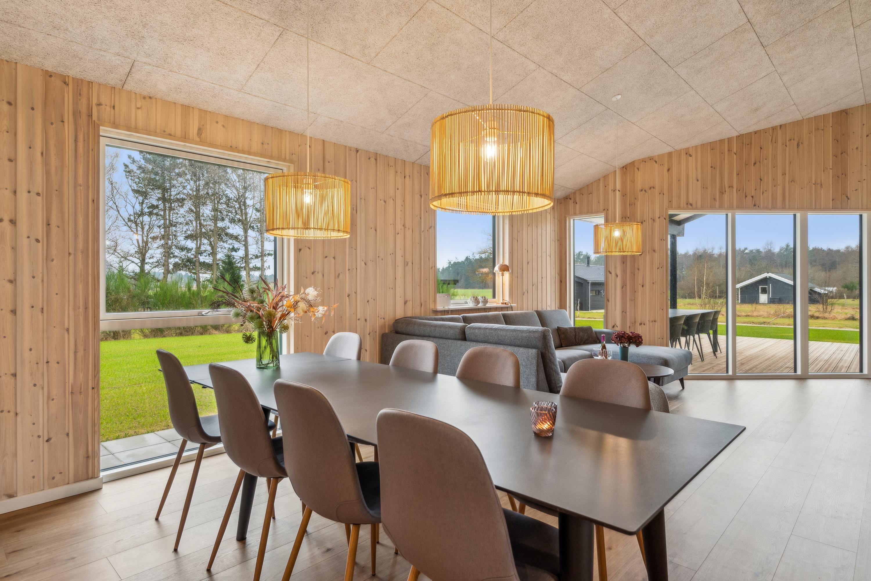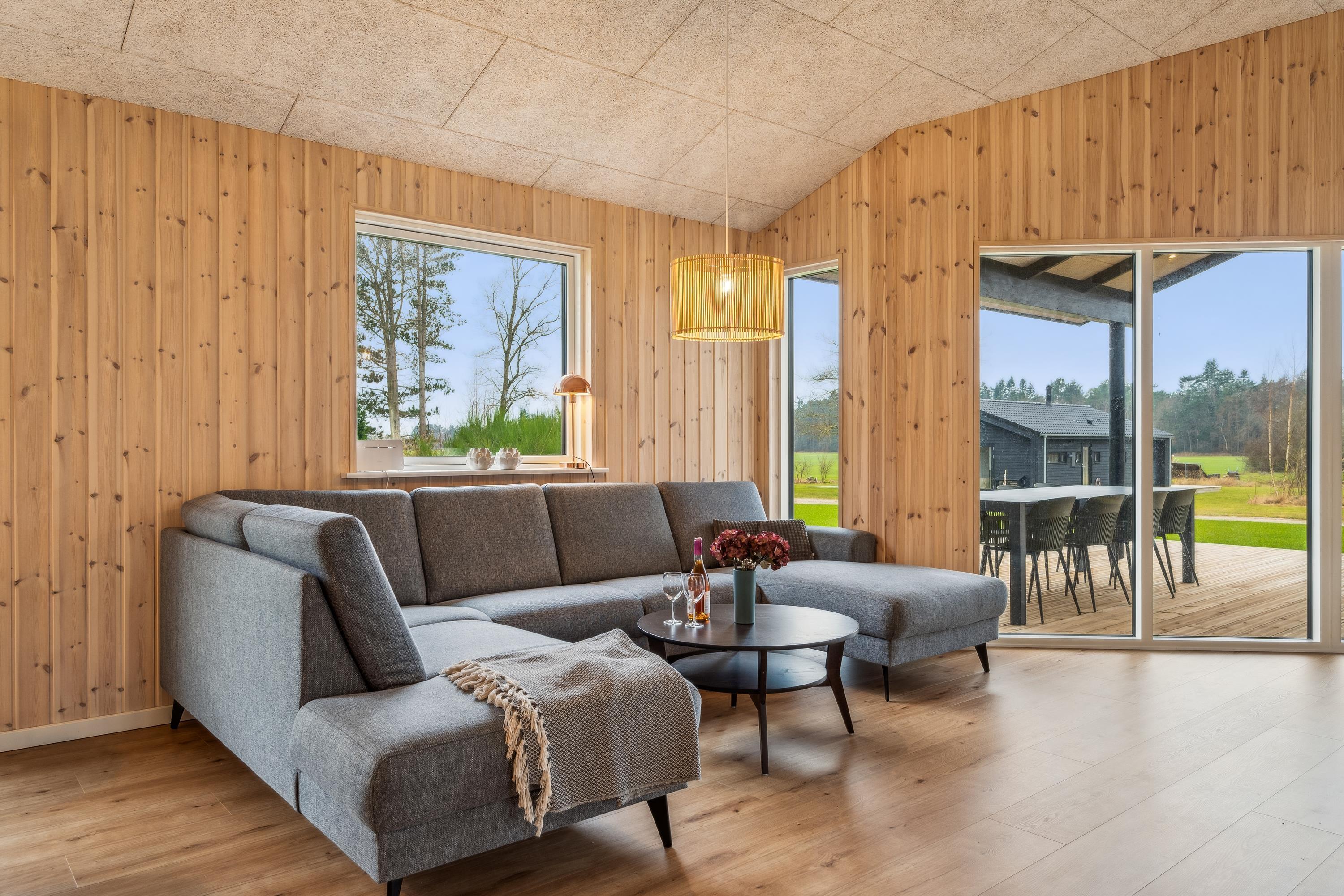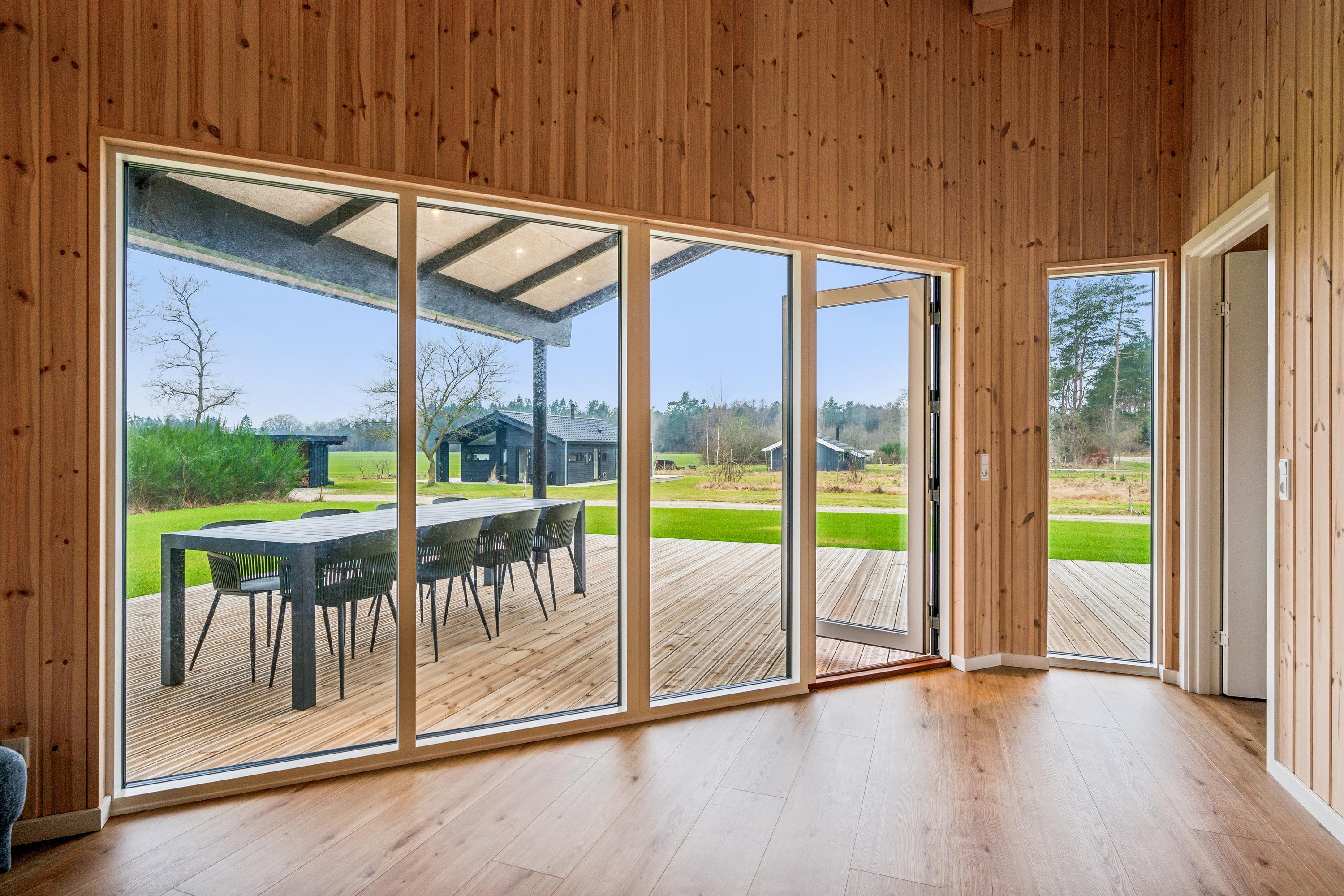 Flot nyopført feriehus nær Ebeltoft med 4 værelser, terrasse, varmepumpe og el-ladestander i fredelige omgivelser.