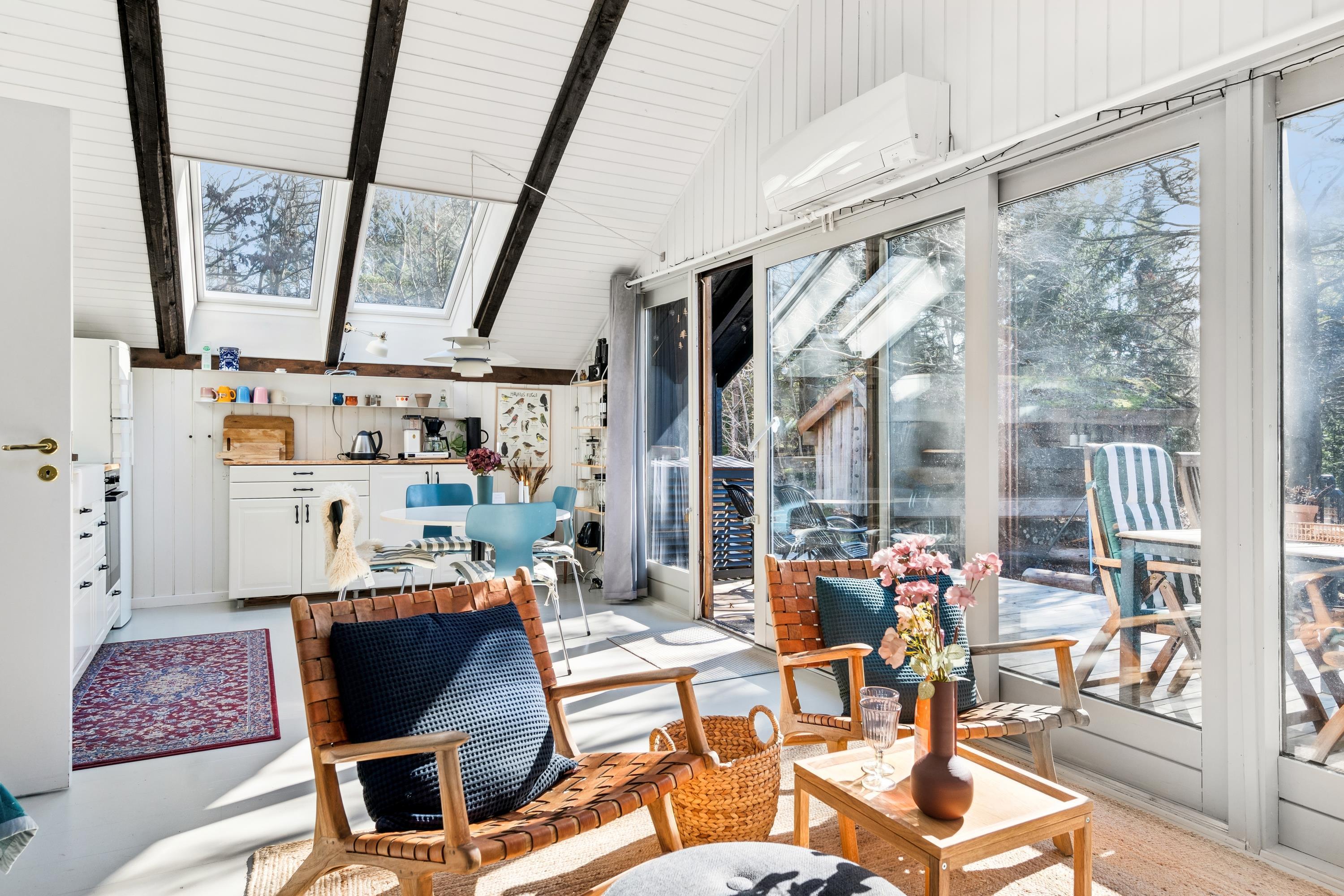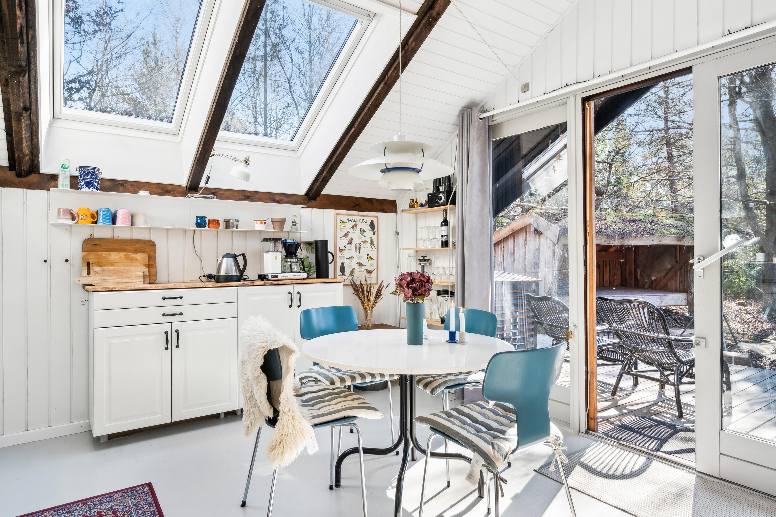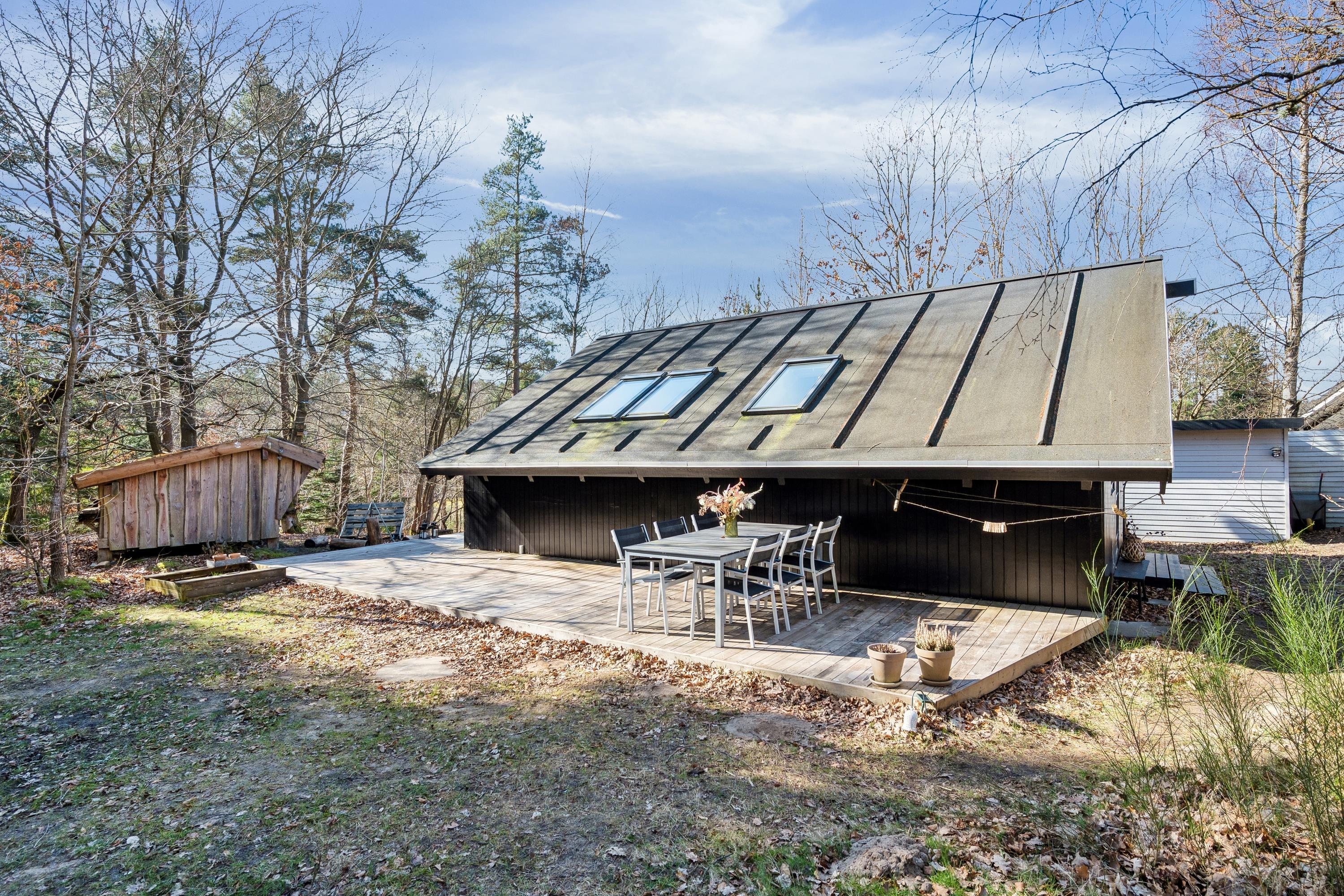 I et smukt skov og naturområde ikke langt fra Ebeltoft finder man dette mindre, men særdeles hyggelige hus. Huset indeholder en lille hyggelig stue med en ny brændeovn samt varmepumpe. I forbindelse med stuen ligger det lille men funktionelle køkken med b.la. opvaskemaskine. Pænt badeværelse med bruseniche. Husets sovepladser finder man i to rigtig hyggelige værelser, hver med en enkeltseng og i stuen finder man to sovepladser i en dobbeltseng, som også fungerer som "sofa-flyderen" Fra stuen er der udgang til en hyggelig terrasse med havemøbler og grill. Hvis man skulle blive fristet til at sove udendørs - så er der også et shelter til fri afbenyttelse. Der er internet i huset og der er tyske og nordiske kanaler på vej. Et rigtigt lille hyggeligt hus, velegnet til den lille familie som gerne vil være i naturen.