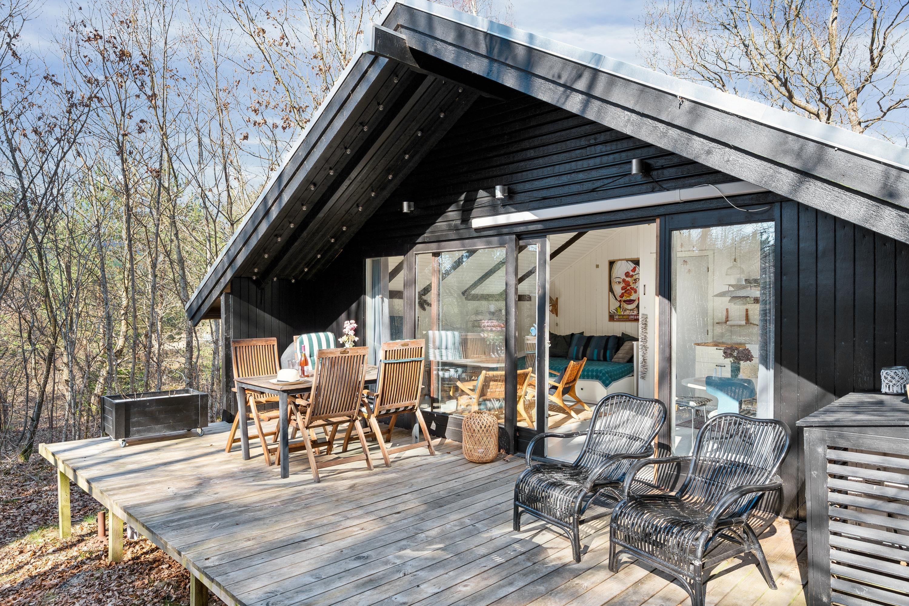 Hyggeligt feriehus i naturskønne Fuglslev nær Ebeltoft med terrasse, brændeovn og shelter til afslapning.