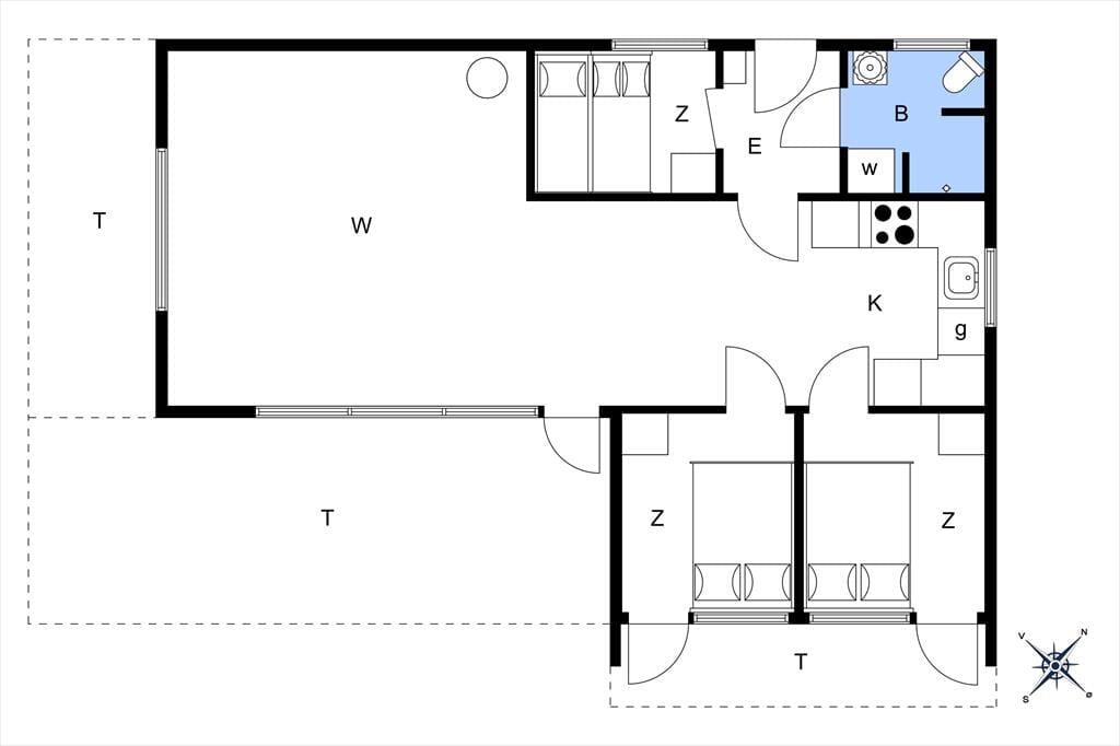 Dette feriehus byder på en lys og venlig atmosfære, hvor hygge og funktionalitet går hånd i hånd. Stuen er indrettet med komfortable møbler og en åben pejs, ideel til afslappede aftener. Herfra kan du træde direkte ud på den solrige fliseterrasse. Huset har et veludstyret køkken med både opvaskemaskine og mikroovn, og spisepladsen er centralt placeret mellem køkken og stue, så du kan holde øje med både børn og madlavning. Der er tre fine soveværelser – to med dobbeltsenge og et med køjeseng – samt et badeværelse med muret bruseniche og vaskemaskine.