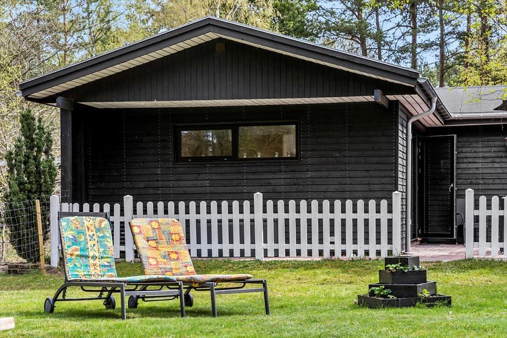 Den indhegnede skovhave er et sandt paradis for børn og hunde. Her kan børnene lege frit på plænen, i sandkassen eller gyngerne, mens de voksne tænder op i grillen eller nyder en kop kaffe i solen. Haven har også et shelter og bålsted, hvor hele familien kan samles til hygge og måske endda en nat under stjernerne.