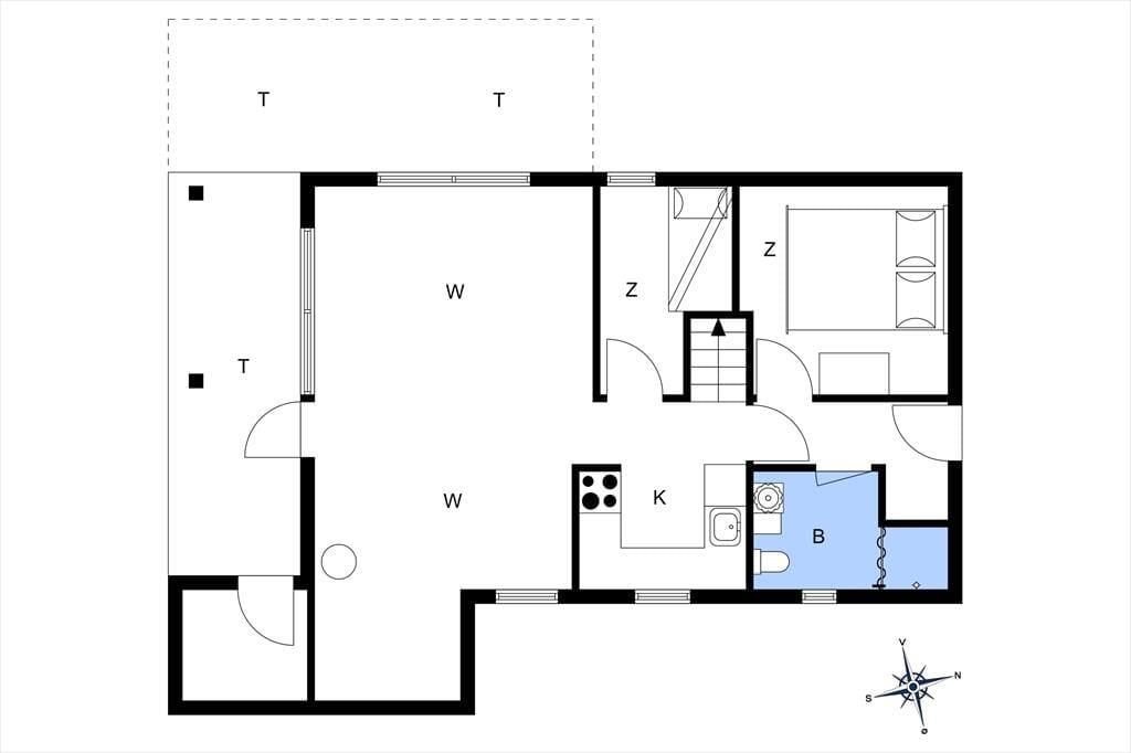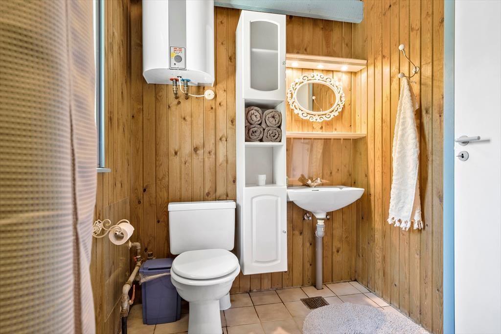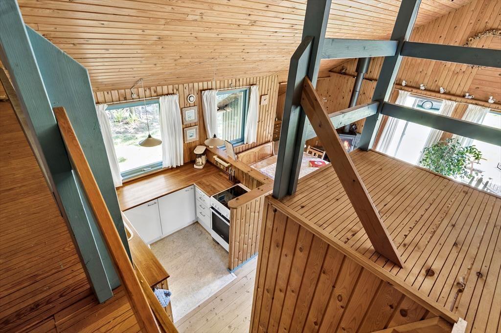 Træd ind i et hyggeligt og funktionelt feriehus, der straks får dig til at føle dig hjemme. Stuen er indrettet med komfortable møbler, en brændeovn, der spreder varme og hygge på de kølige aftener, samt direkte adgang til terrassen. Det dejlige køkken er yderst praktisk og ligger i åben forbindelse med spisepladsen, som er centralt placeret mellem køkken og stue. Her kan I samle familien til spil og hyggelige samtaler, mens maden tilberedes. Huset rummer tre fine soveværelser - et med dobbeltseng, et med køjeseng og et med dobbeltseng på hemsen – samt et funktionelt badeværelse, der opfylder alle behov.