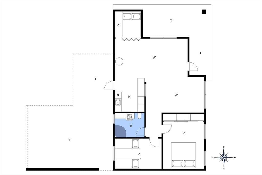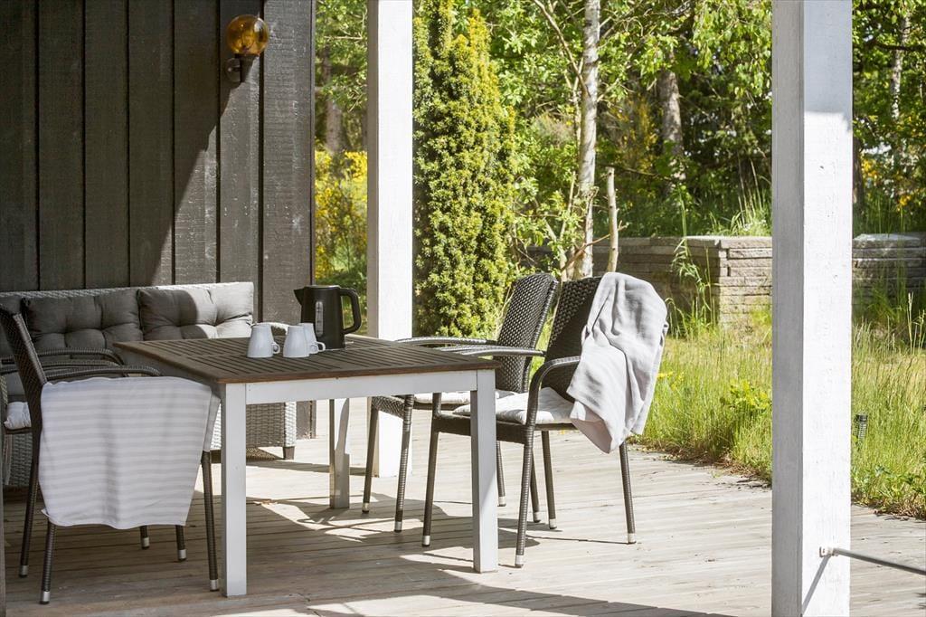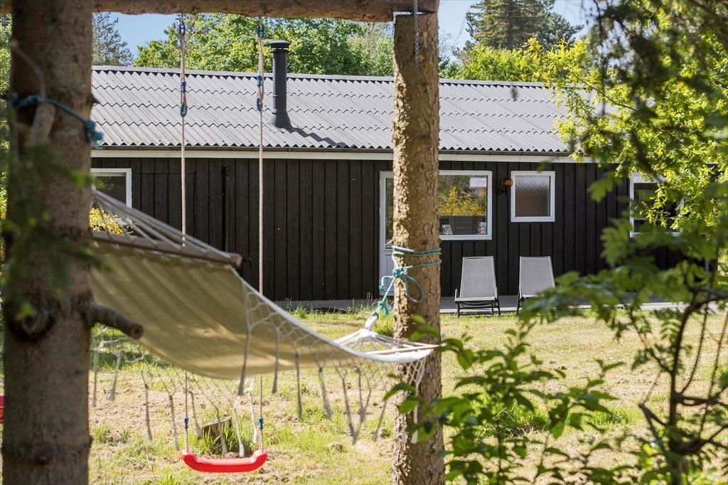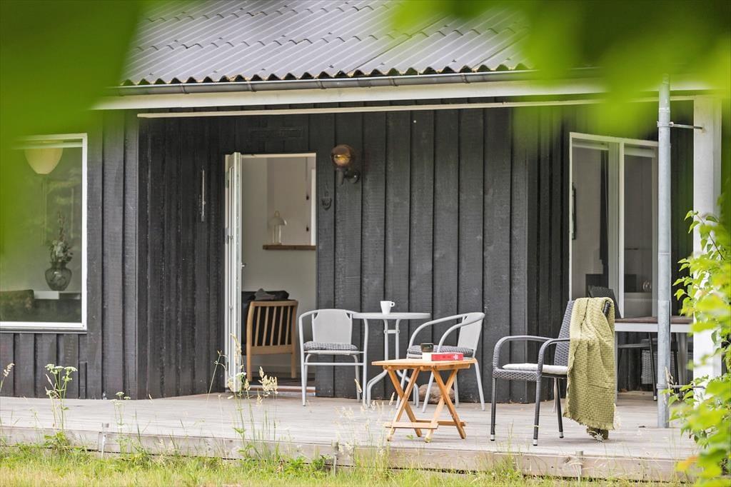 Feriehuset ligger på en stor og indbydende grund med masser af plads til leg og udendørsaktiviteter. Den rummelige terrasse, som er delvist overdækket, giver mulighed for at nyde udendørs måltider uanset vejret. Terrassen er udstyret med havemøbler og indbyder til afslapning i solen eller hyggelige grillaftener. For de mindste er der et hyggeligt legeområde på grunden, hvor de kan lade fantasien få frit spil. Der er også en carport tilknyttet huset, så bilen kan stå i ly.