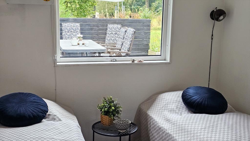 Ikke langt fra Ebeltoft finder du dette dejlige og hyggelige feriehus, der indbyder til en afslappende ferie for hele familien. Huset byder på en lys stue med både brændeovn og varmepumpe, der skaber en behagelig atmosfære året rundt. Fra stuen er der direkte udgang til en stor, skøn terrasse, hvor du kan nyde kaffen i morgensolen. I åben forbindelse med stuen finder du et funktionelt køkken og en hyggelig spiseafdeling, der gør det nemt at være sammen om madlavningen. Huset rummer desuden et dejligt badeværelse med bruseniche, to soveværelser og en alkove, som skaber ekstra sovepladser. Praktiske faciliteter som vaskemaskine og Chromecast til streaming af dine yndlingsserier er også til rådighed.