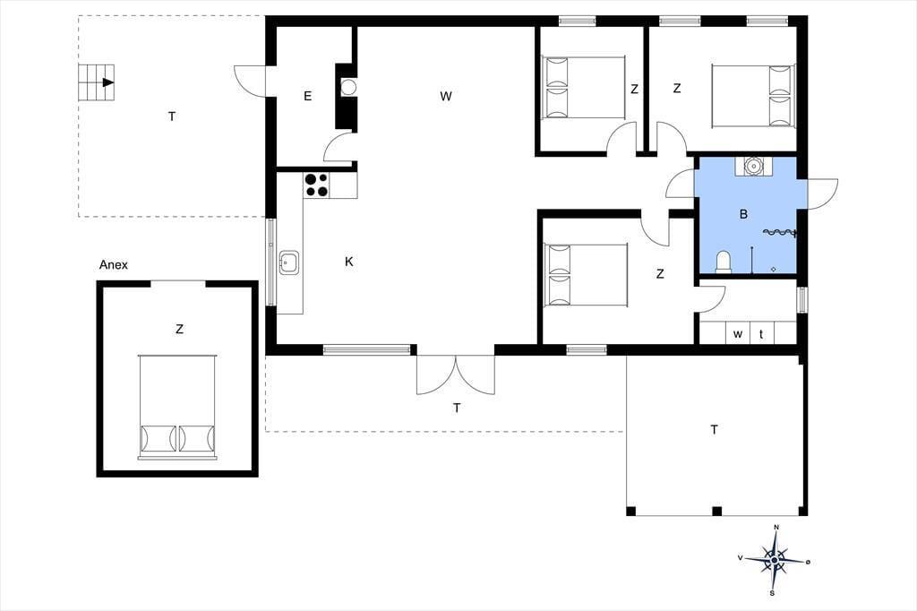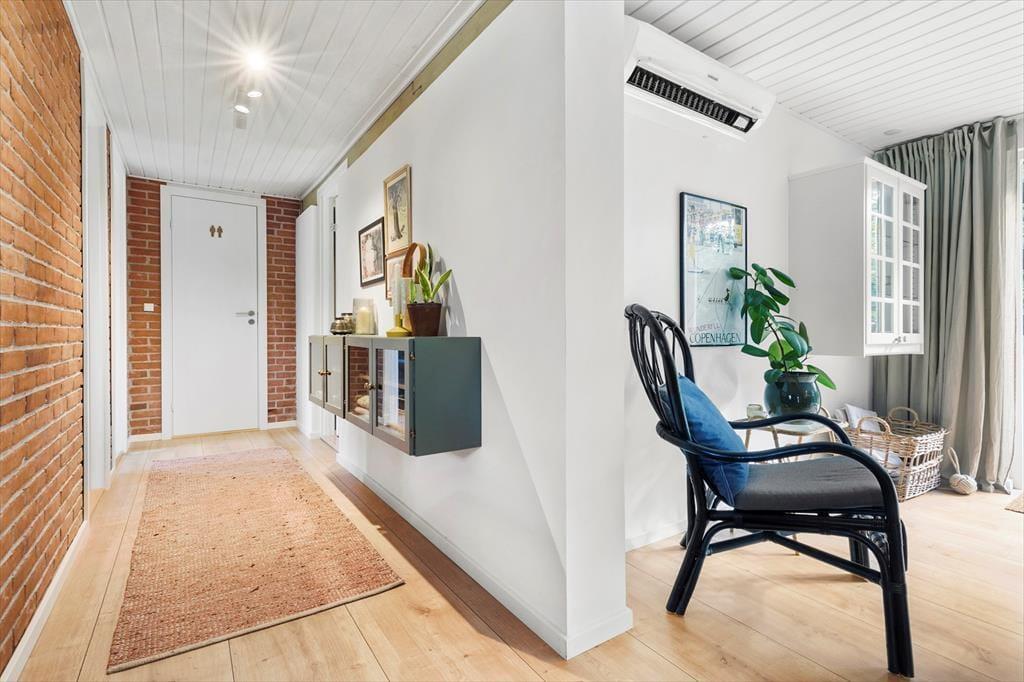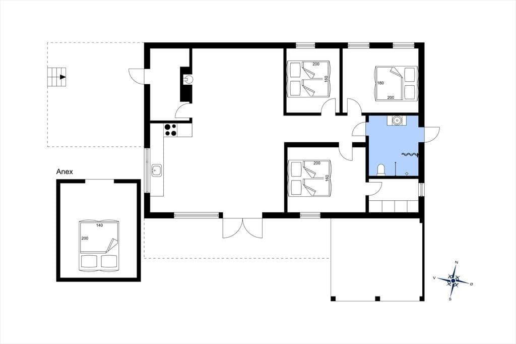Her er der virkelig gjort noget ud af indretningen med rolige farver, stemningsfuld belysning og en stil, der straks får dig til at føle dig hjemme. Fra stuen har du et smukt kig til naturen udenfor, mens du hygger dig med et spil kort, deler gode historier eller nyder et lækkert måltid ved det store, hjemmelavede plankebord. Det grønne, stilfulde køkken gør det til en fornøjelse at lave feriemad, og i den bløde sofa foran pejsen kan du nyde en stille stund med en god bog. Huset rummer tre dejlige soveværelser med dobbeltsenge samt et hyggeligt anneks – perfekt til gæster eller teenagere, der vil have lidt privatliv. Badeværelset er rummeligt med stor bruseniche, og der er praktisk bryggers med vaskemaskine og tørretumbler. Brænde til pejsen er naturligvis gratis.