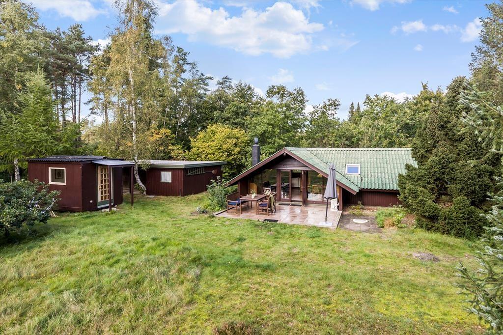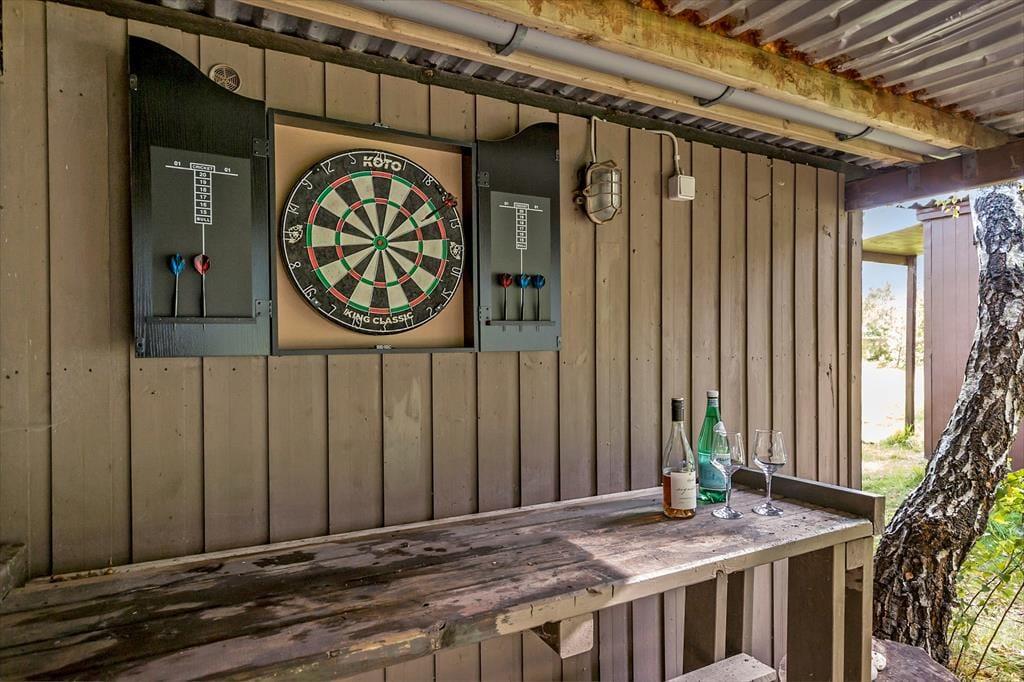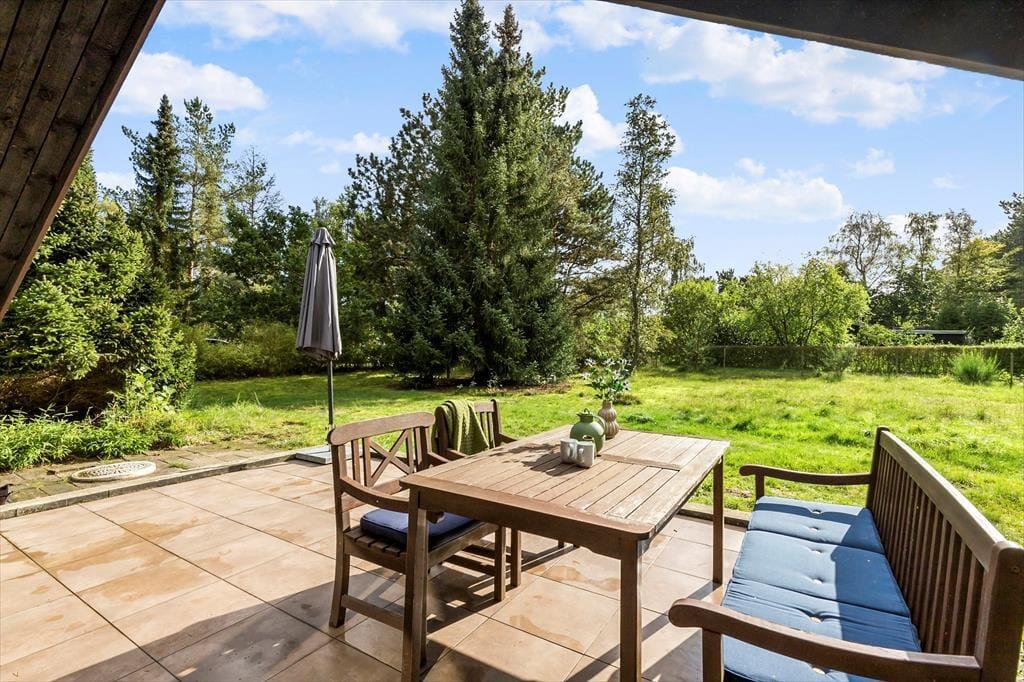 Den store have omkring huset er en sand oase for naturelskere. Her er græsset trimmet med små stier, der inviterer til opdagelse blandt de vilde planter. På den delvist overdækkede terrasse kan I nyde måltiderne i det fri – selv hvis vejret er lidt drilsk. Og i carporten er der plads til både dartspil og hyggestunder, uanset om solen skinner eller ej. Det er en perfekt ramme for at nyde tid med familien eller bare slappe af til lyden af fuglesang.