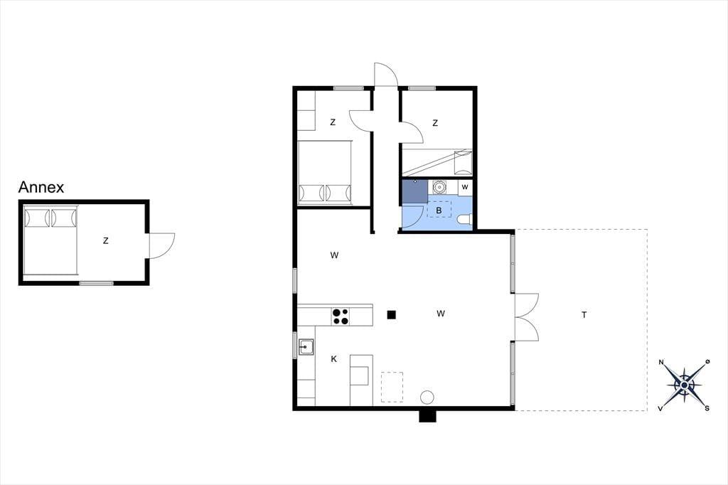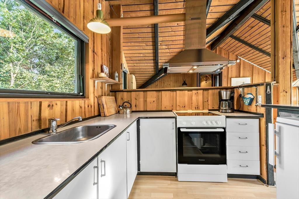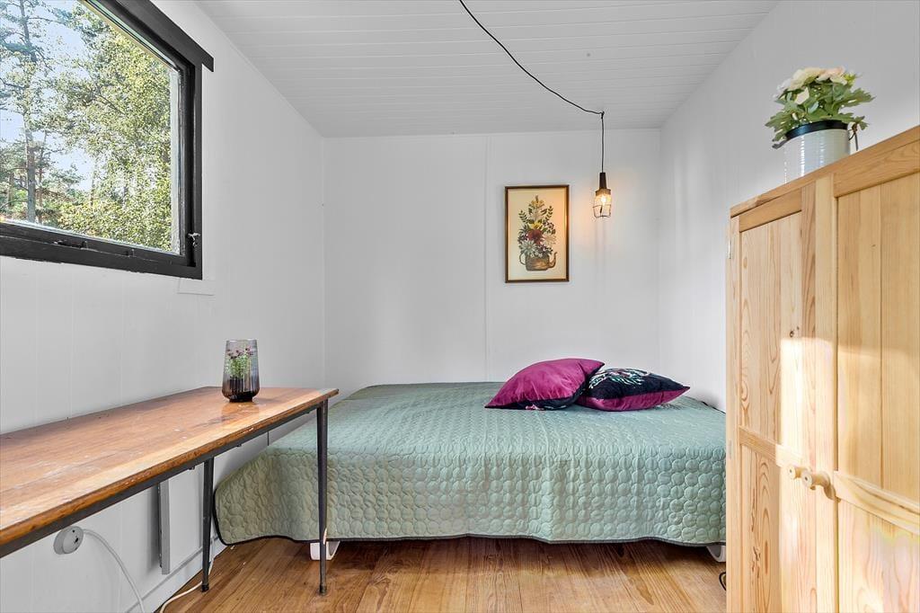 Dette klassiske og næsten originale Kalmarhus byder på masser af charme og hygge med sine skrå vægge, vinkler og loft til kip. Her er der skabt et rart og hjemligt miljø, hvor køkken, stue og spiseafdeling flyder sammen i et lyst og åbent rum med udsigt til haven, der er "vild med vilje". Badeværelset er af ældre dato, men funktionelt med bruser og vaskemaskine. Der er to soveværelser i huset: det ene med dobbeltseng og det andet med køjeseng til to samt en tremmeseng til familiens yngste. I annekset finder I en hyggelig dobbeltseng – perfekt til forår, sommer og efterår, når temperaturen stadig er lun.