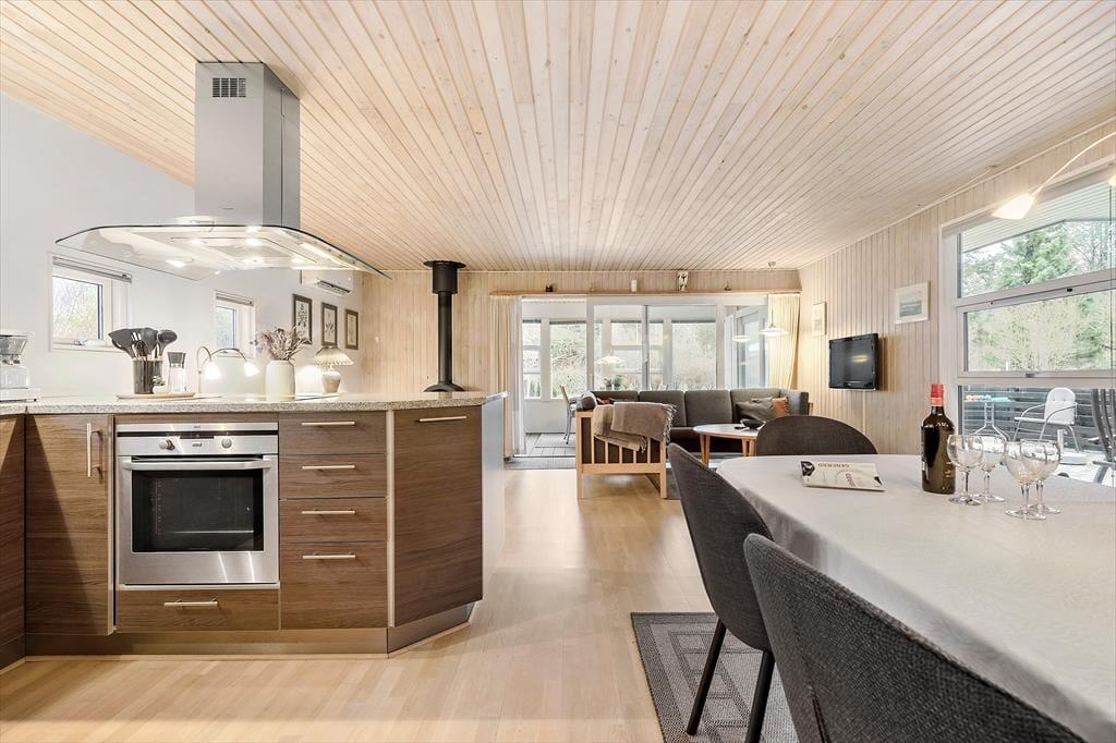 Træd ind i dette charmerende og velholdte feriehus, hvor hygge og komfort går hånd i hånd. Det rummelige køkken inviterer til fælles madlavning og hyggelige stunder, mens stuen med brændeovn og adgang til den lukkede udestue skaber en varm atmosfære året rundt. Med tre hyggelige soveværelser er der plads til hele familien eller en gruppe venner.