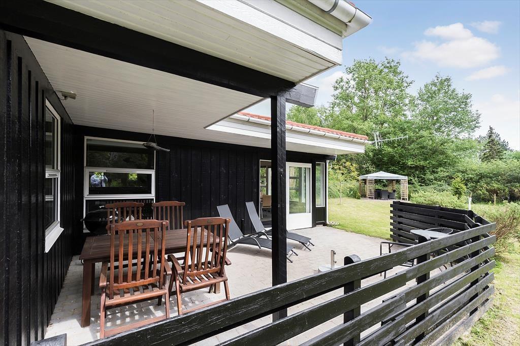 På den store, uforstyrrede naturgrund, omgivet af træer, kan I virkelig koble af. Den frodige græsplæne indbyder til leg og aktiviteter for både børn og voksne. Terrassen på husets bagside er det perfekte sted at nyde dagens måltider eller blot slappe af med en god bog, mens solen bevæger sig over himlen.