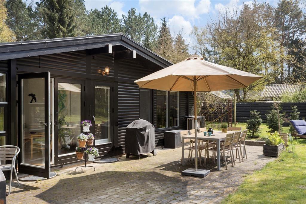 Her er mange muligheder for at finde den terrasse som giver mest sol og læ på samme tid. Terrassen som du går ud på direkte fra køkkenet, er ifølge ejeren bedst om morgenen. Senere på dagen kan du vælge en af de andre terrasser, så du på den måde følger solen rundt på grunden.