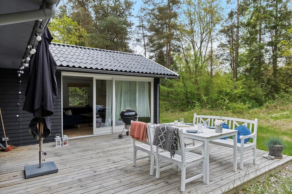 En dejlig have, der er "vild med vilje" så her kan du sidde og nyde flora og fauna. Her er en god stor terrasser, hvor solen kan nydes. Her er ro og fred i lange baner. Gode havemøbler og grill. Foran huset er der også et åbent plateau, så der er flere muligheder for at finde solen og nyde den.